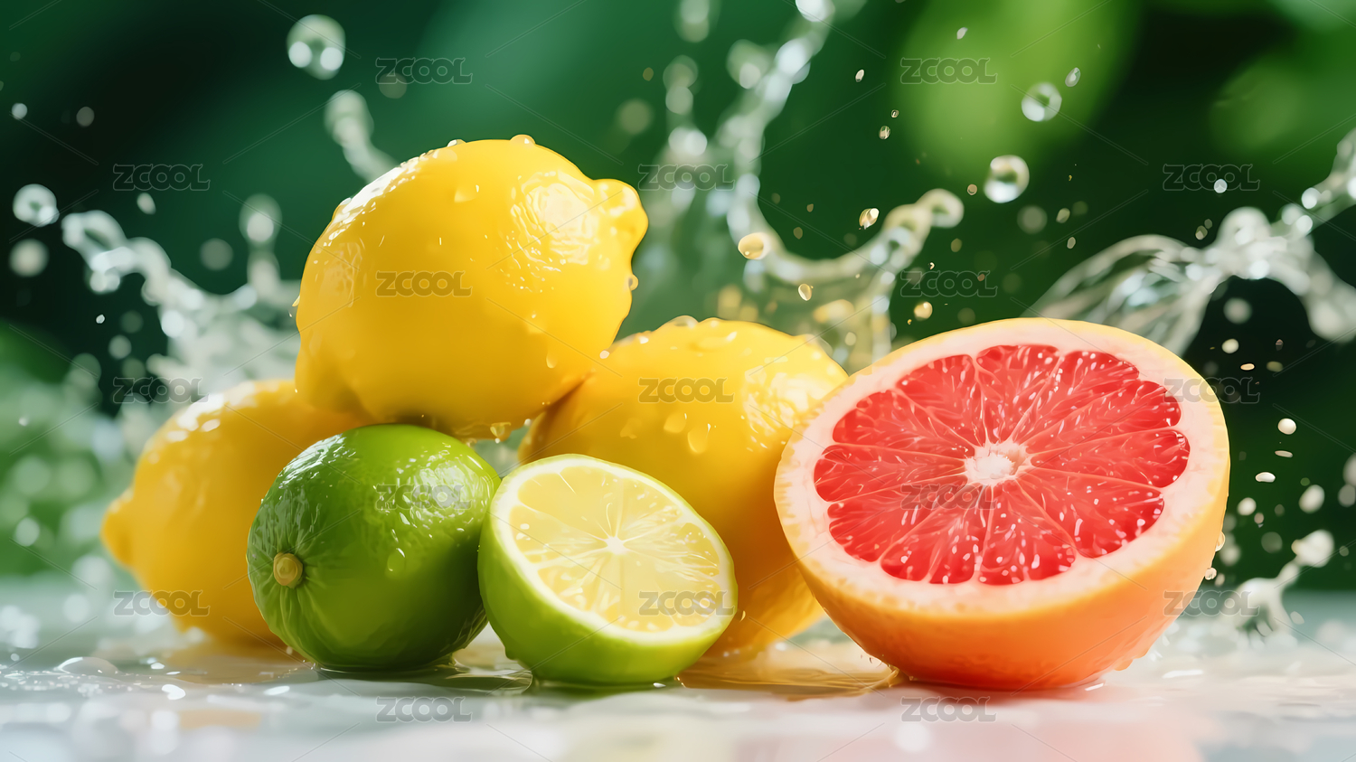 水花四溅柠檬柚子青柠