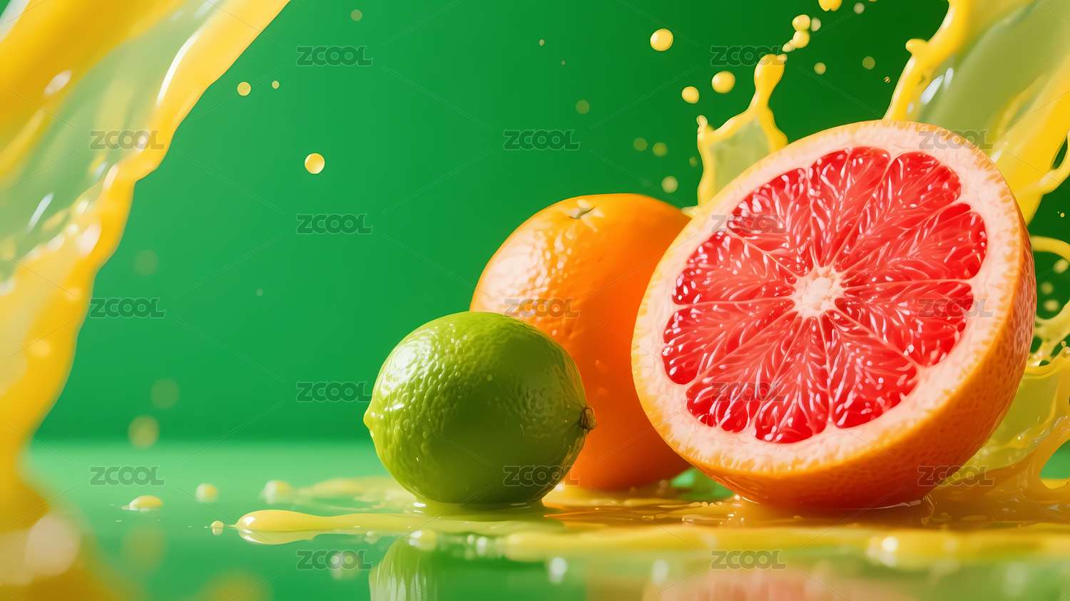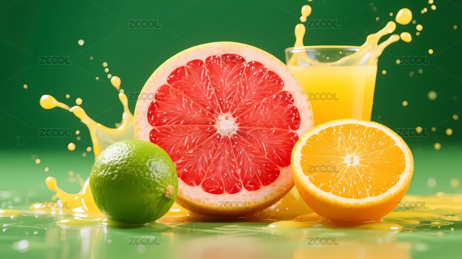 鲜艳柚橙青柠果汁