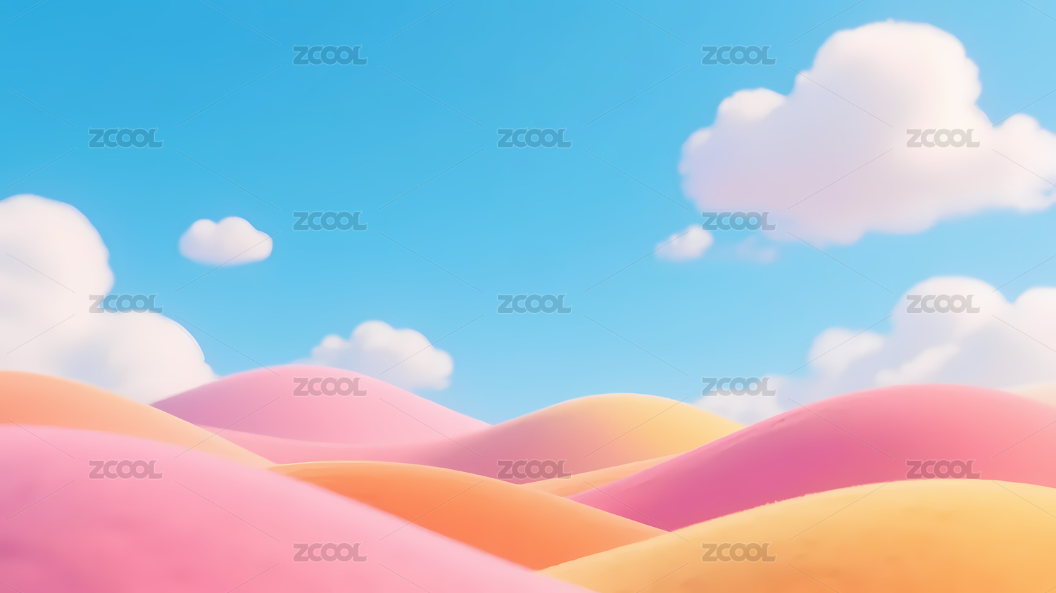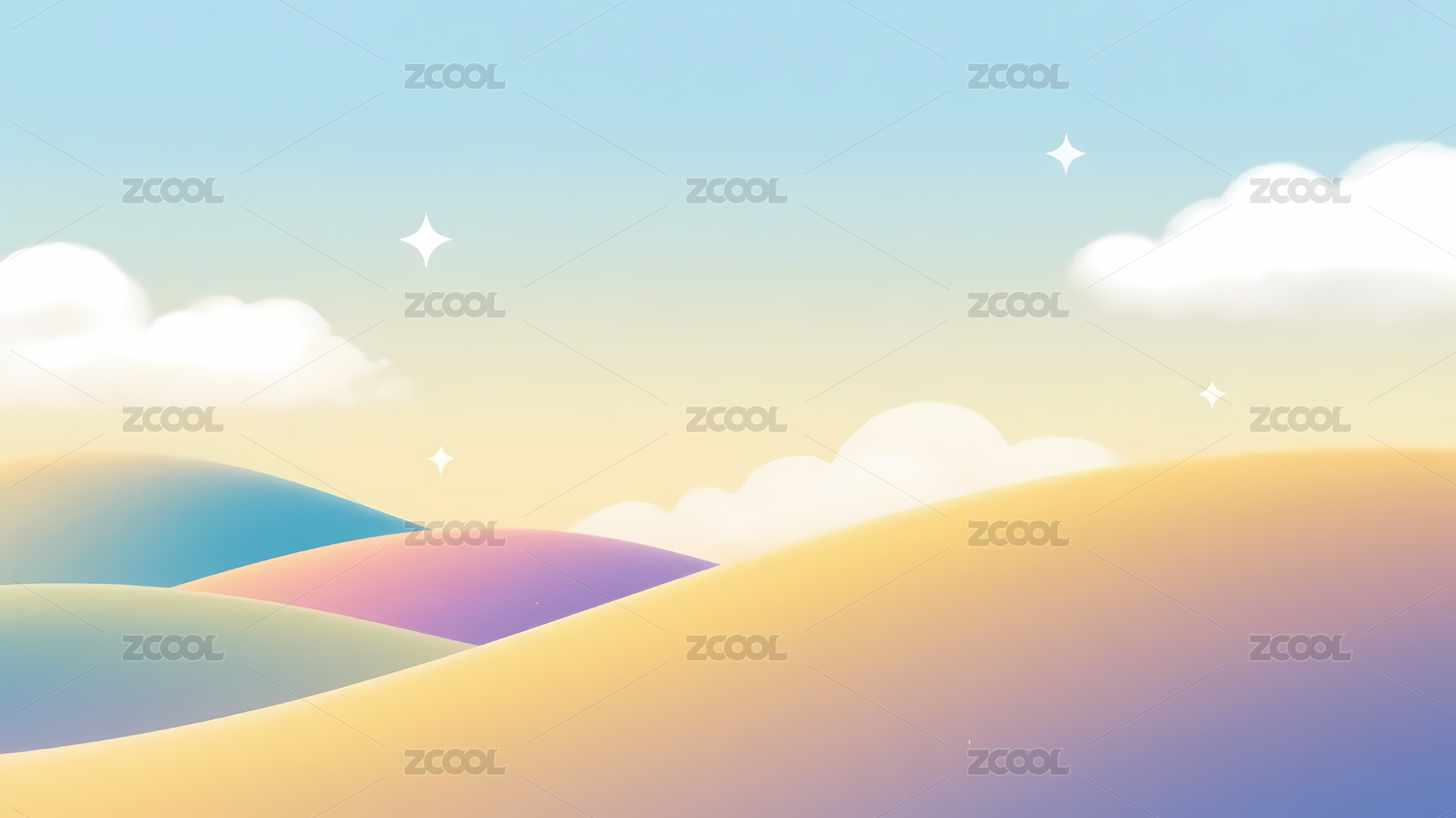 彩色,黄色,渐变,蓝色,点缀,云朵,天空,山丘,白云,星星