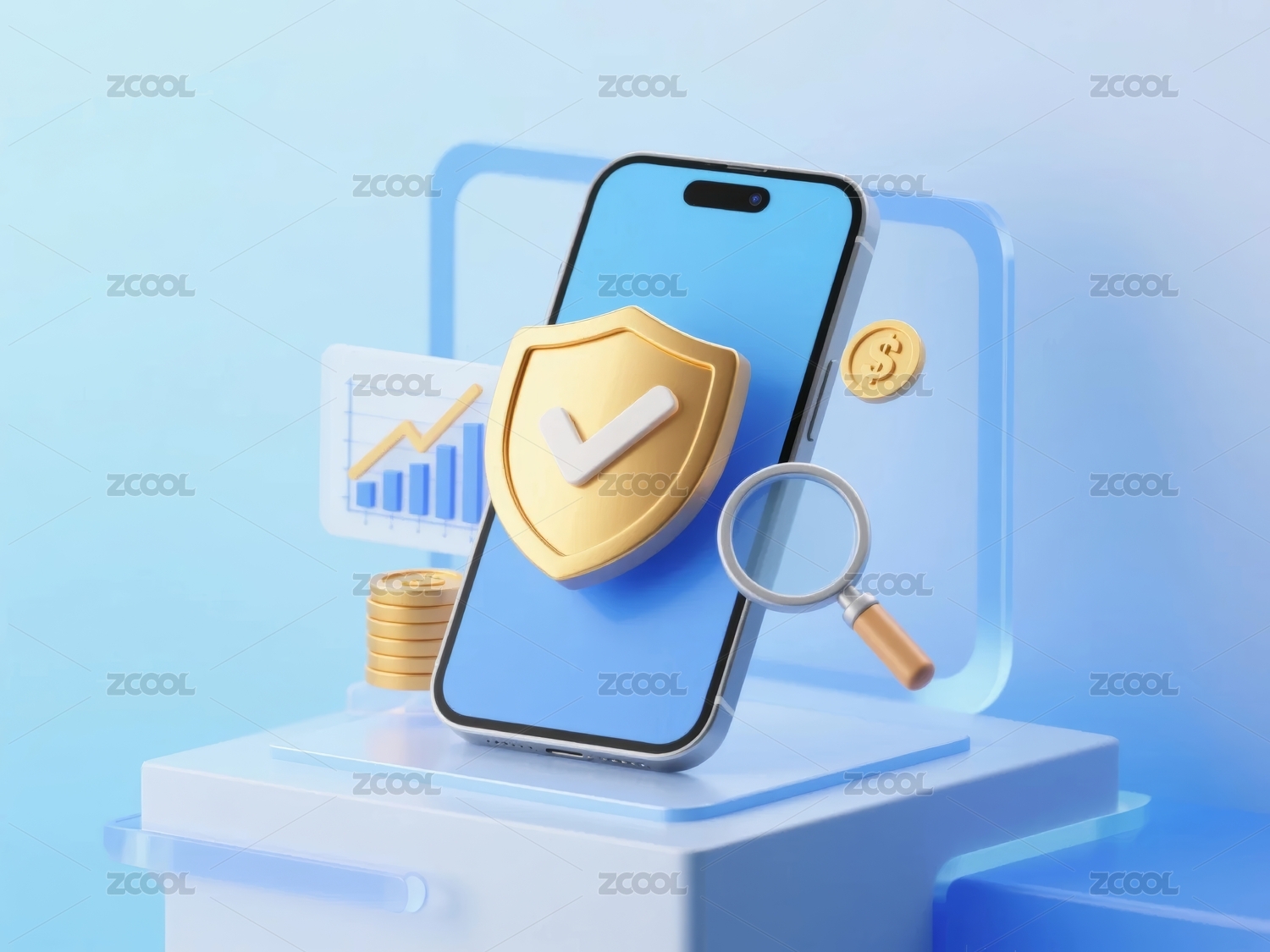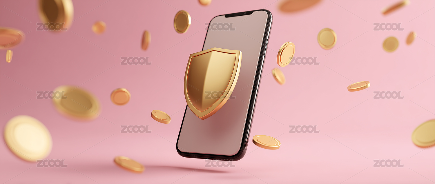 金色,粉色,简洁,现代,智能手机,盾牌,金币,科技,安全,几何