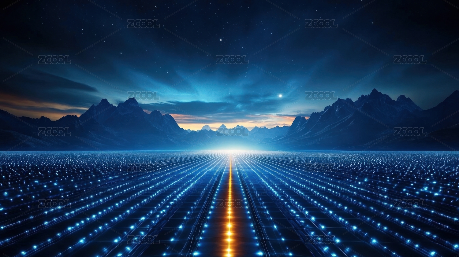 公路,高山,高速,风景,夜空,霓虹灯,人工智能,数据流,传输,背景