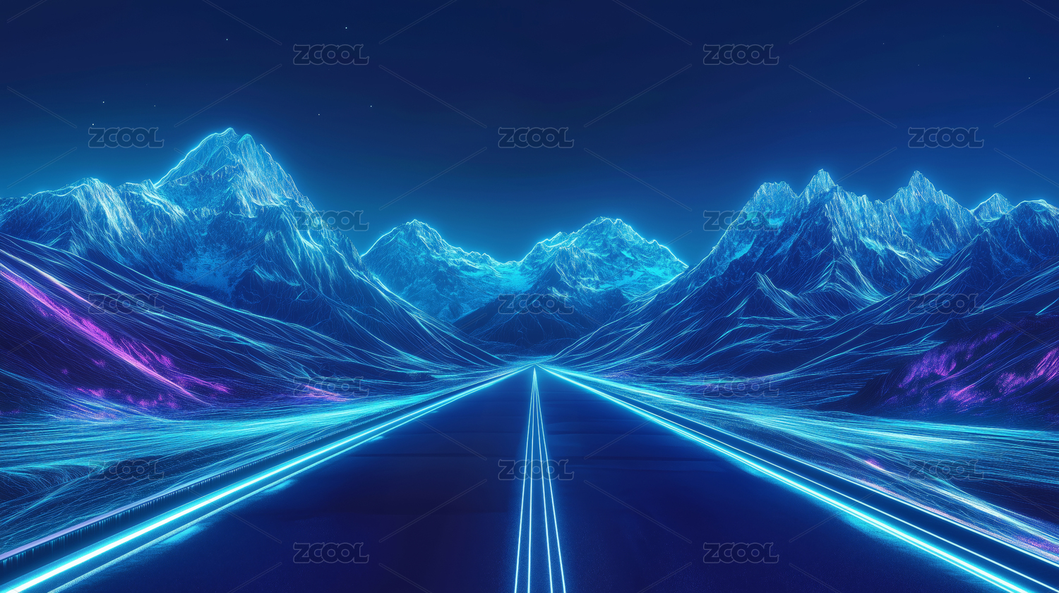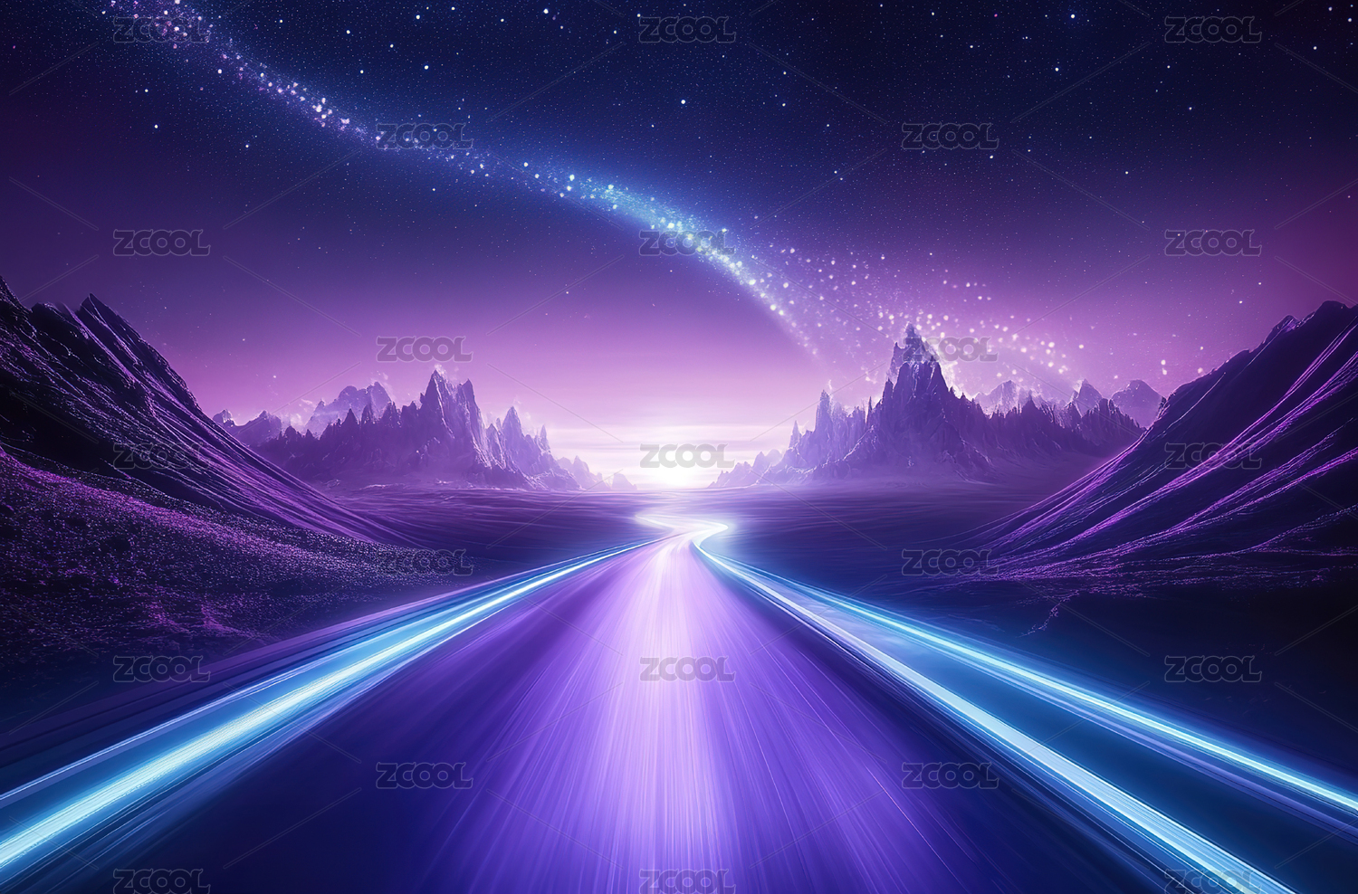 蓝紫色发光地形道路星空背景