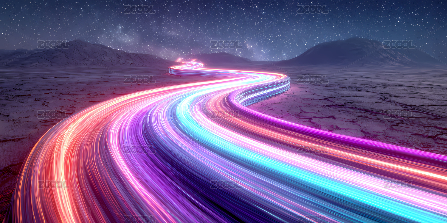 夜空蓝紫光带公路