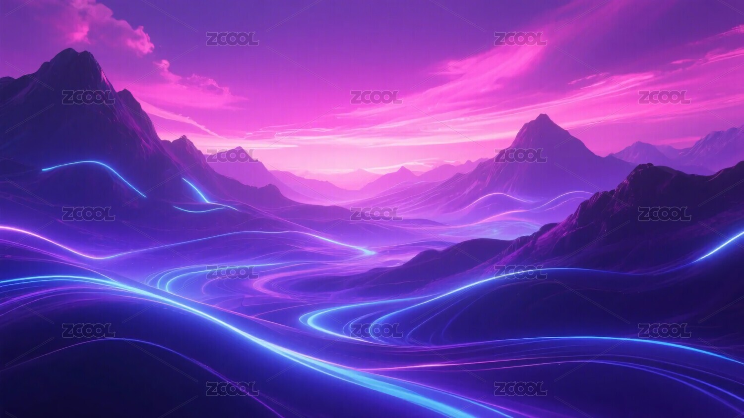 霓虹公路穿梭山脉,唯美未来感