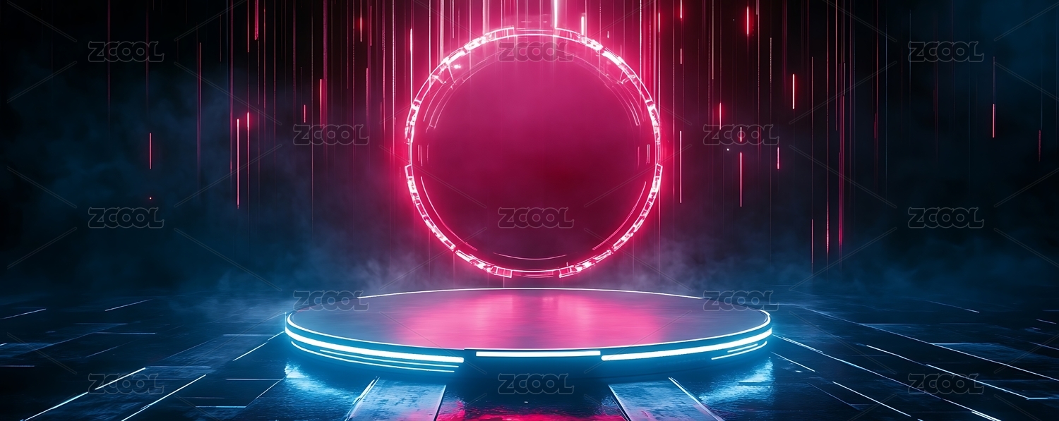 3D渲染的科幻延伸背景,几何隧道和霓虹灯