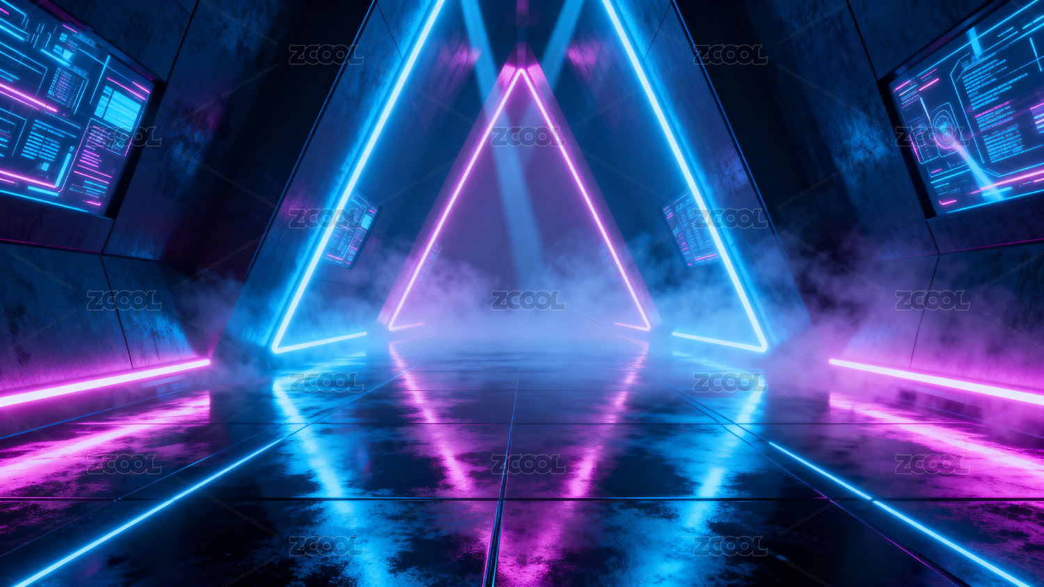 霓虹灯线条场景,舞台背景赛博科技氛围感