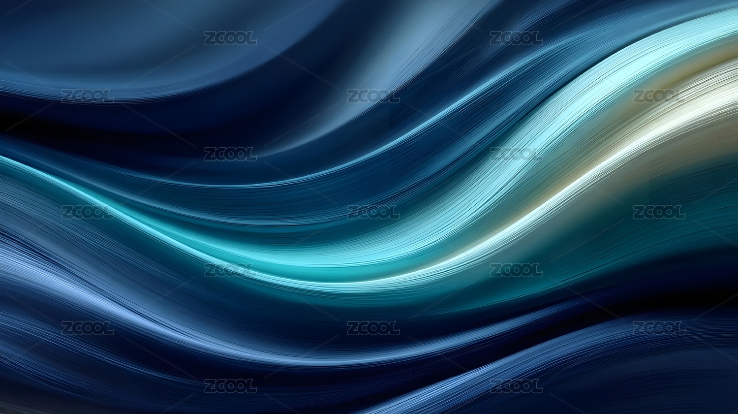 蓝绿色波浪交织的流动艺术