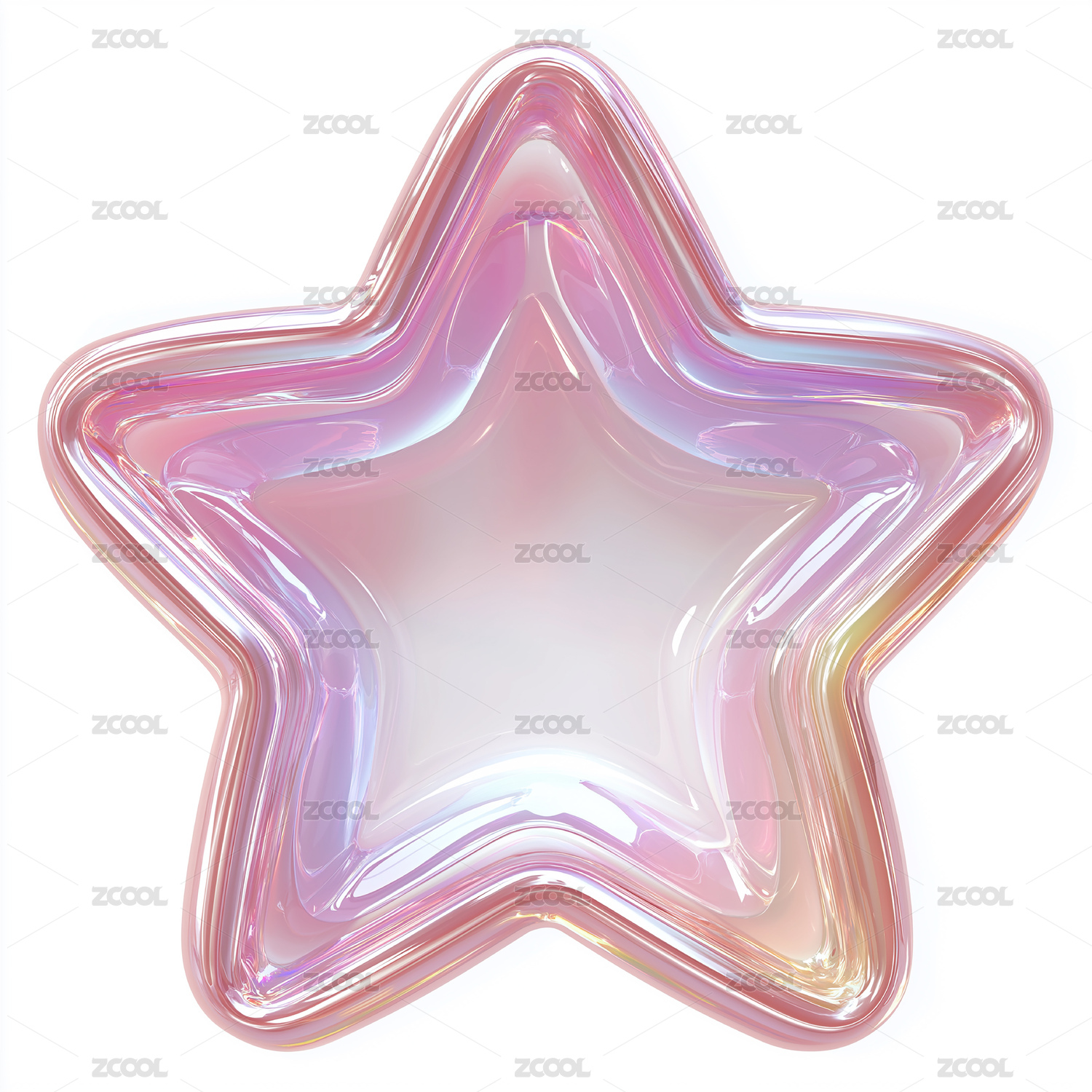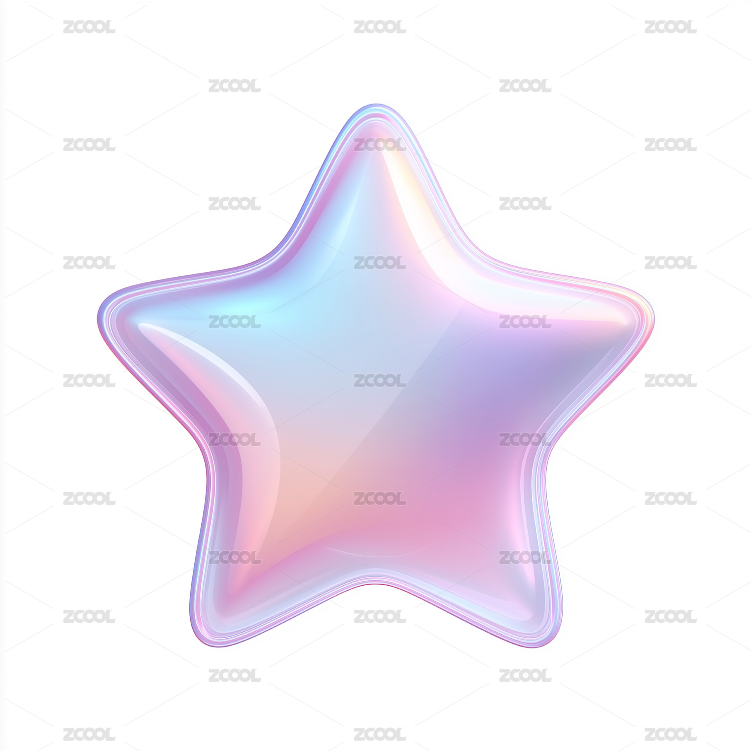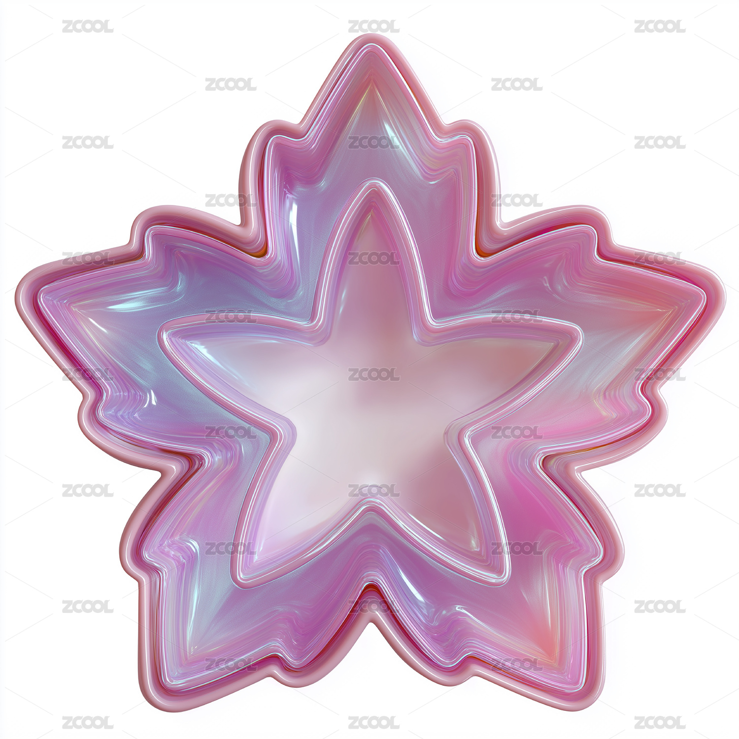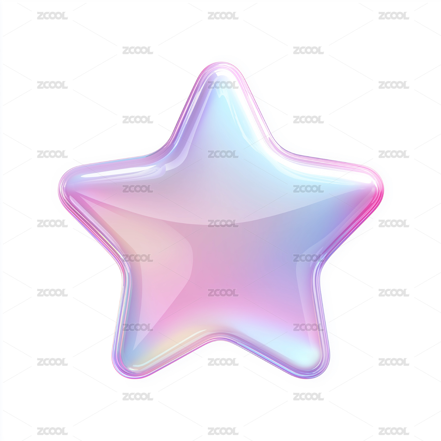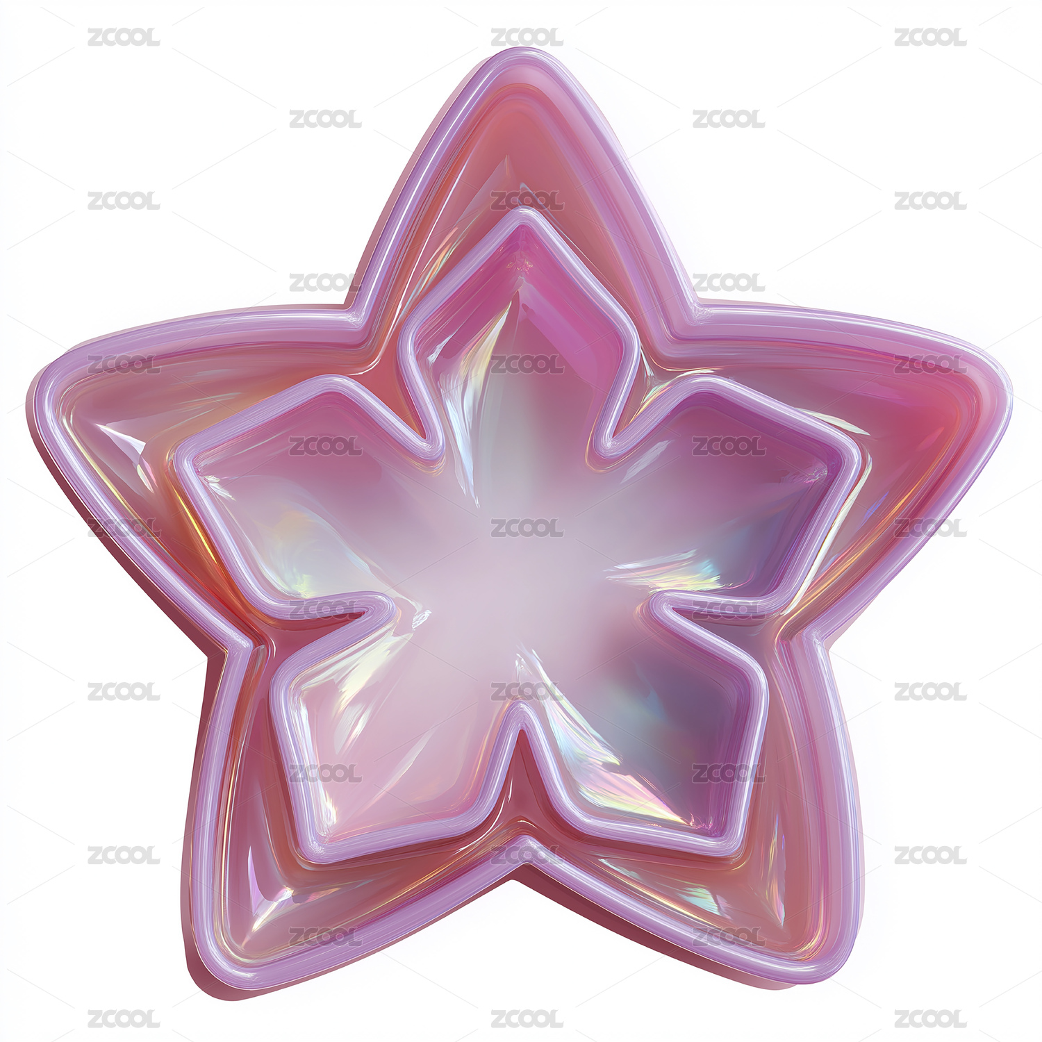 梦幻渐变粉紫透明立体五角星装饰图