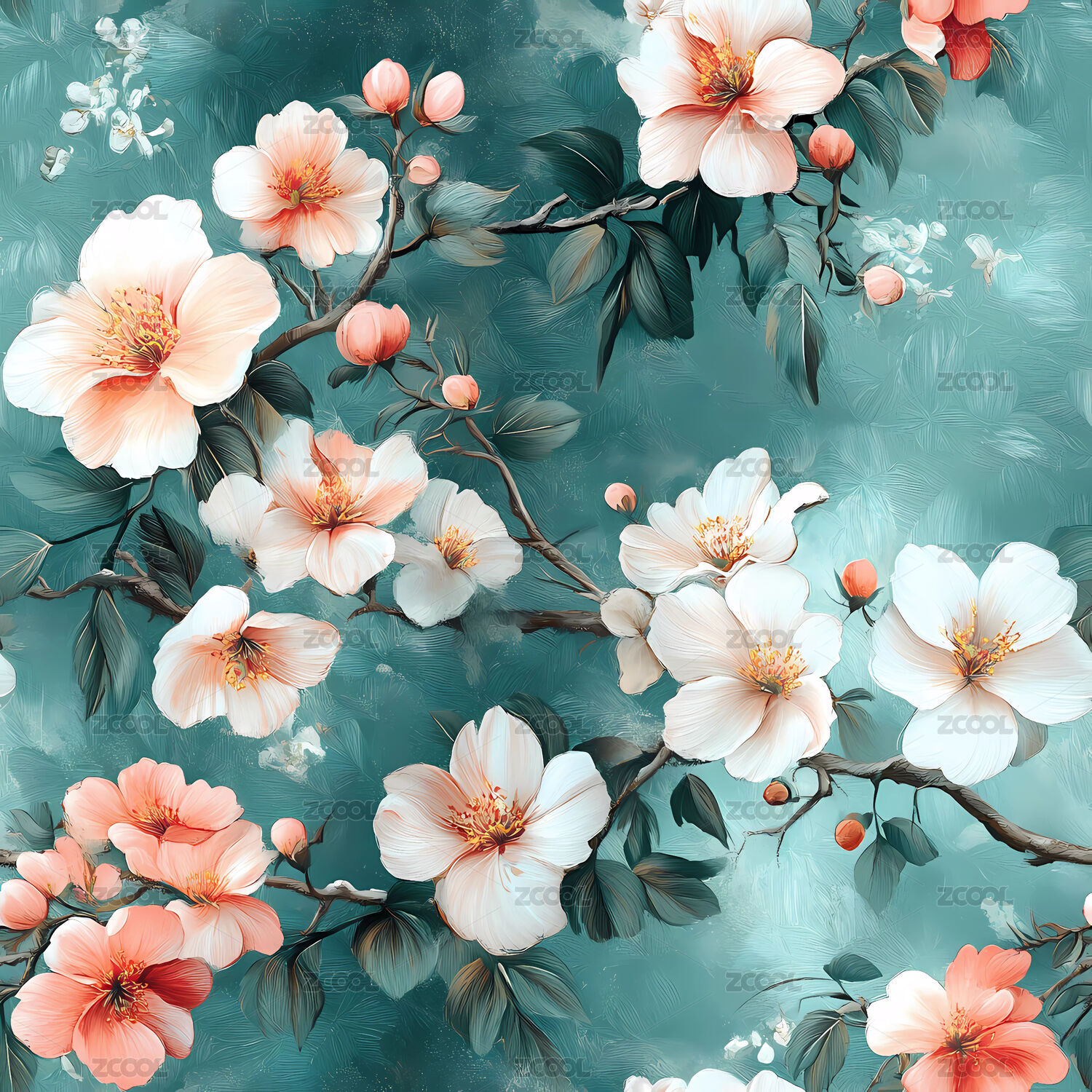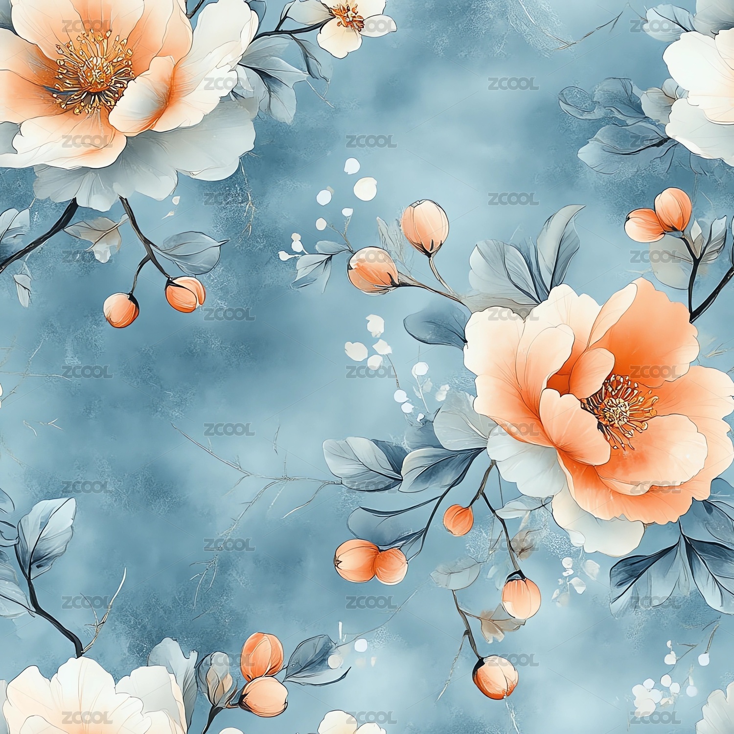 水墨牡丹盛开花卉中国风复古布料底纹图案