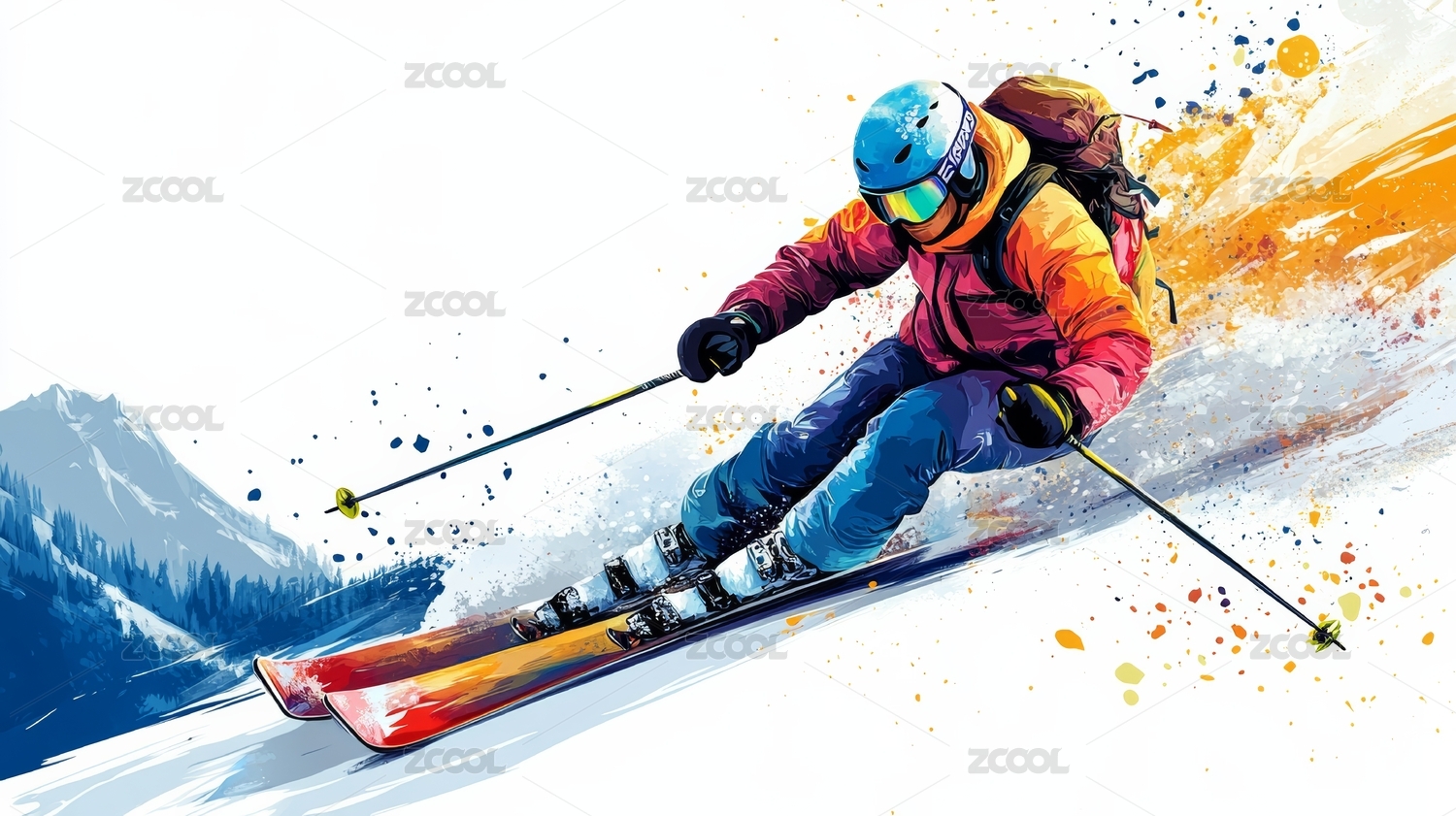 滑雪者疾驰而下,动感十足的冬季运动场景