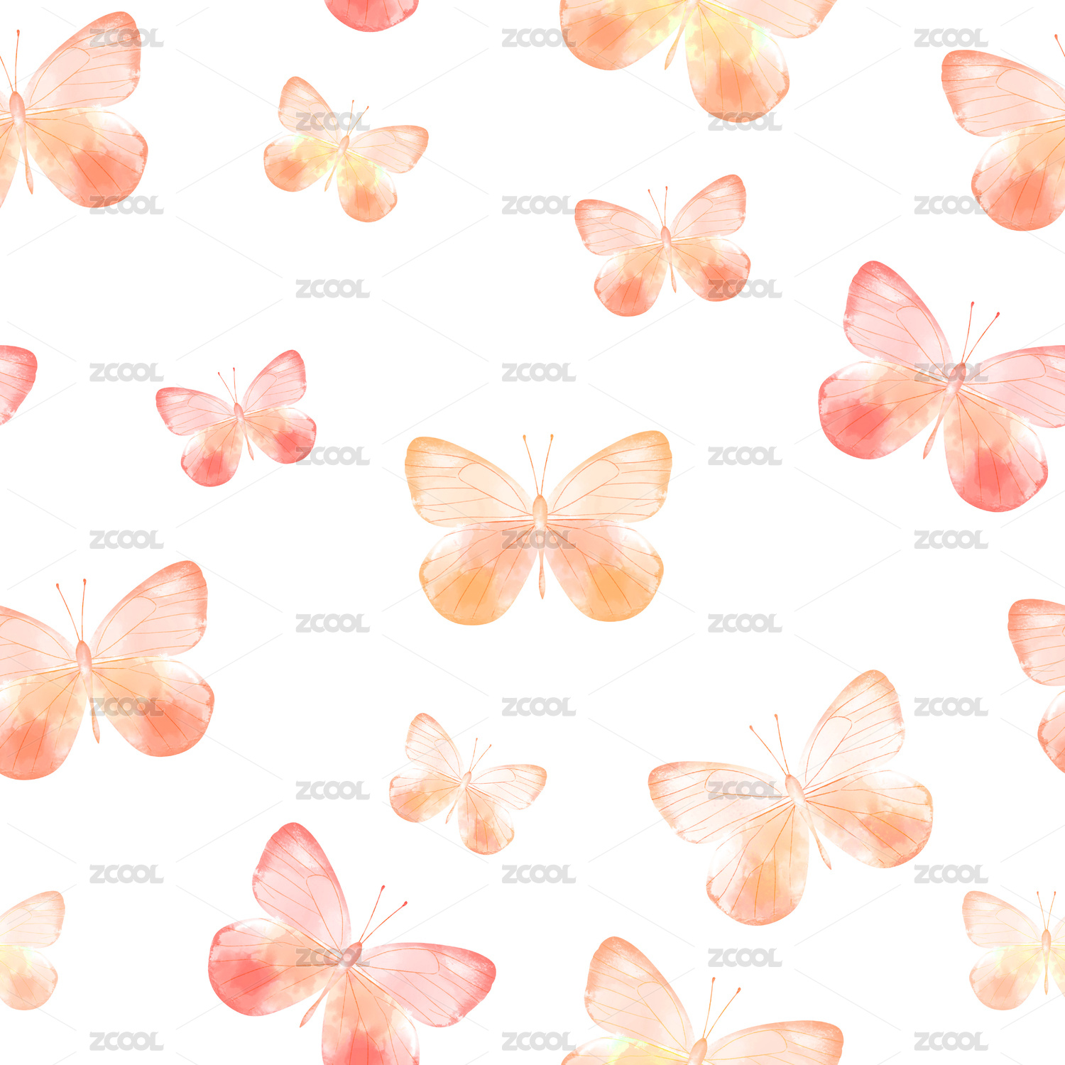 蝴蝶,水彩,插画,彩色,杏色,昆虫,花卉,图案,北欧风,莫兰蒂色系