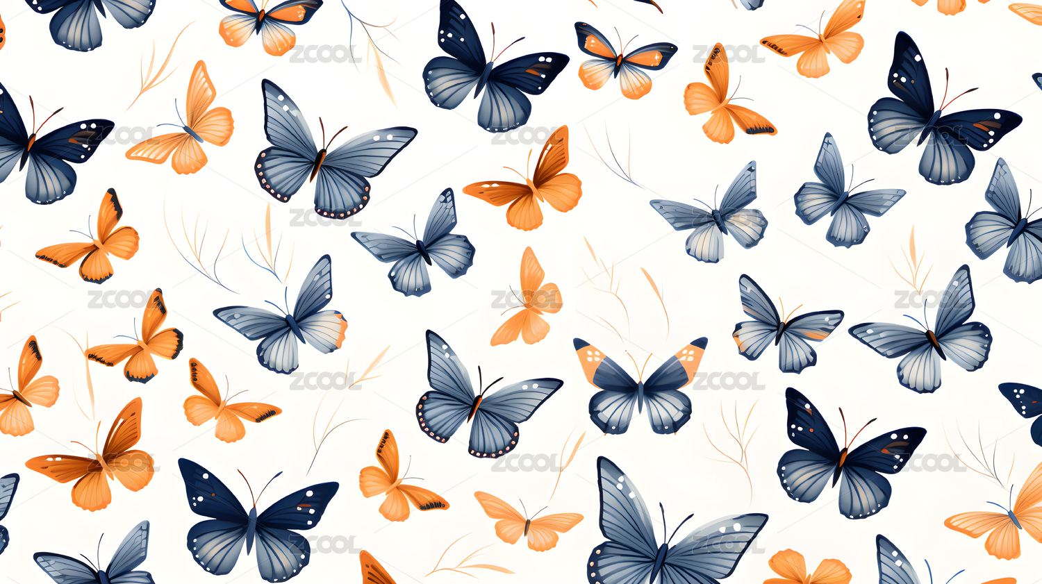 北欧风多彩莫兰蒂色系蝴蝶印花图案