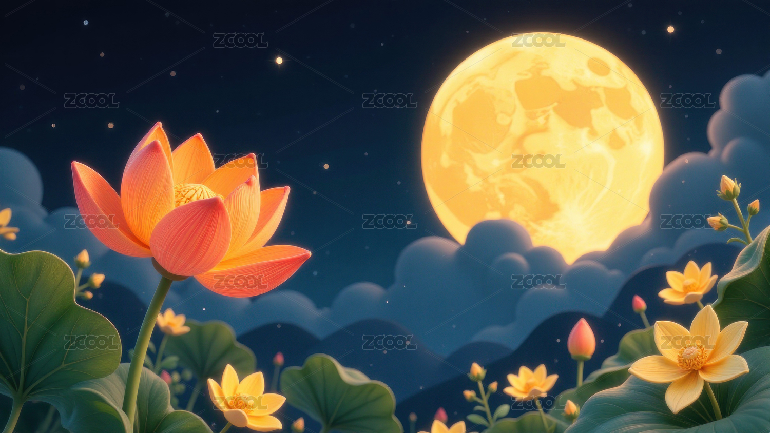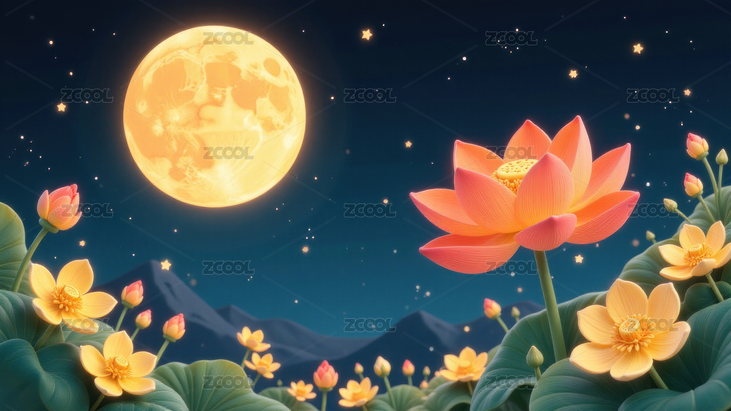 主视觉,中秋,场景,艺术,设计,自然,氛围,国风,明月,花卉