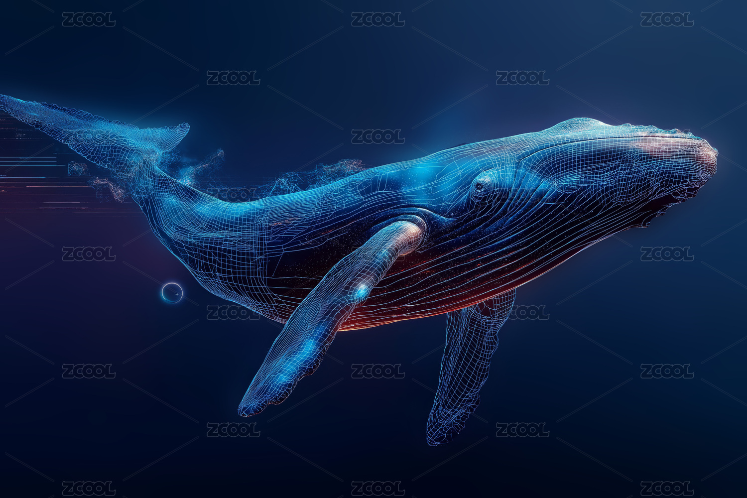科技感鲸鱼徜徉在数据深海中的极简插画