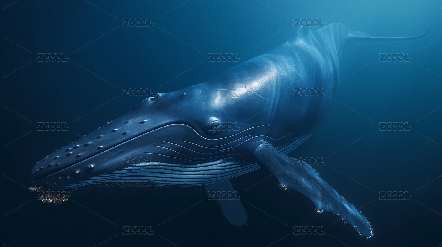 深海中优雅游动的座头鲸