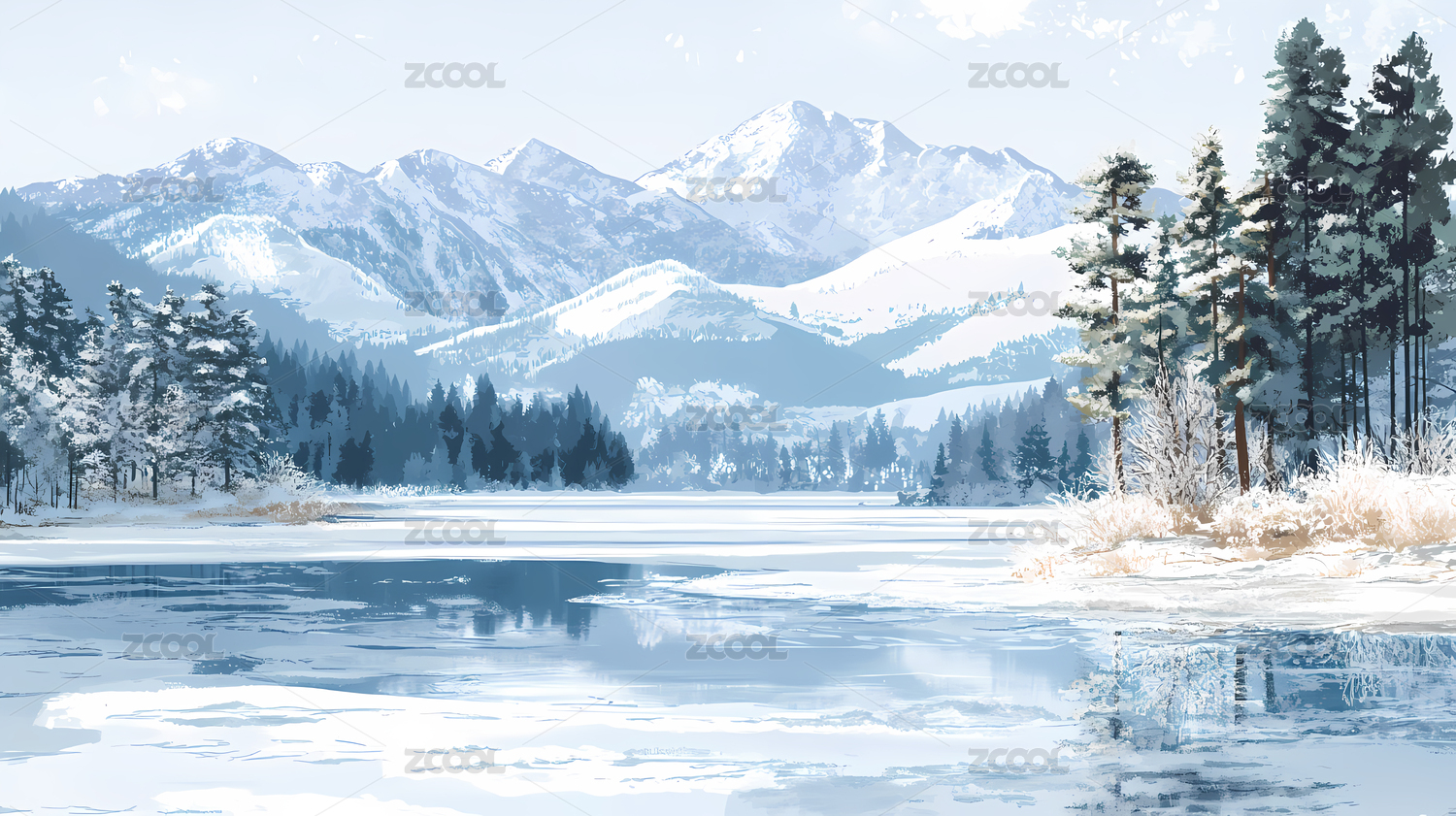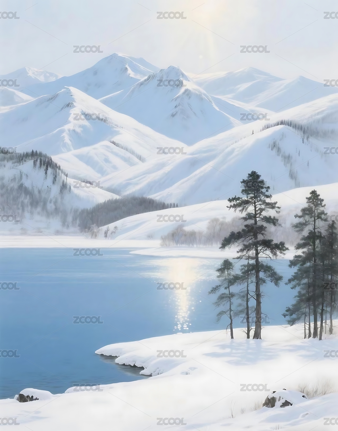 雪景,山峦,湖泊,冬韵,银装,素裹,寒林,静湖,雪岭,冰原