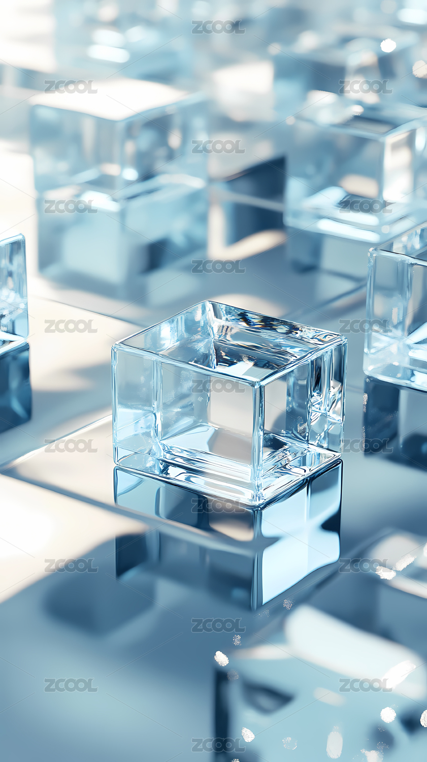 抽象蓝色透明悬浮立方体商务科技主题背景