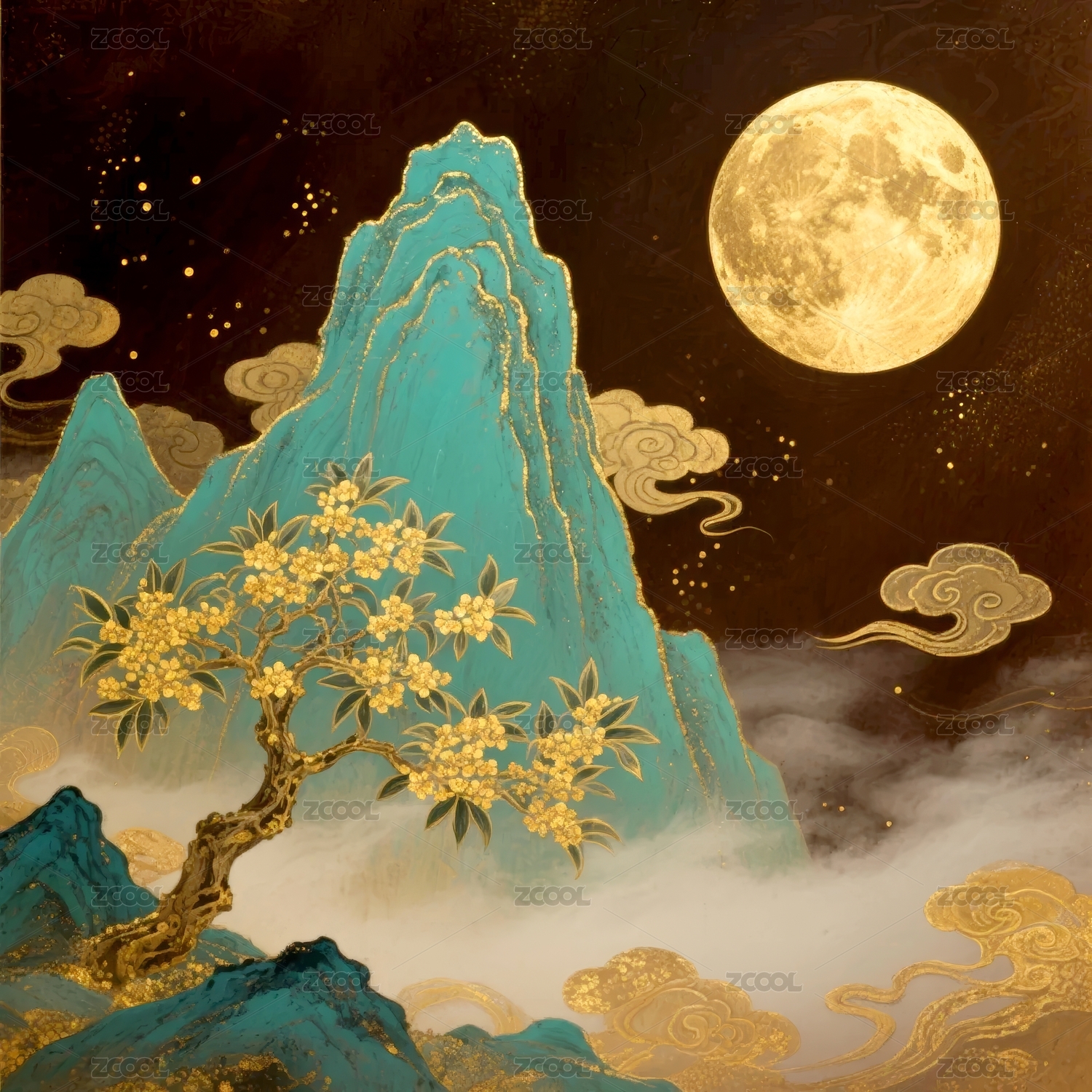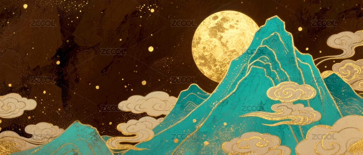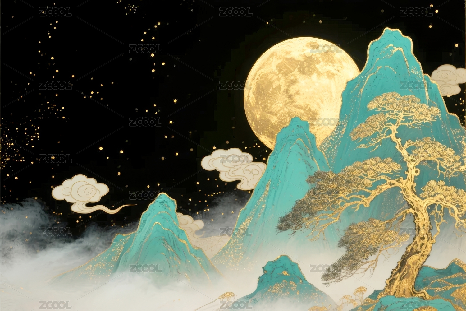 主视觉,场景,国风,中秋,明月,山峦,传统,艺术,设计,背景