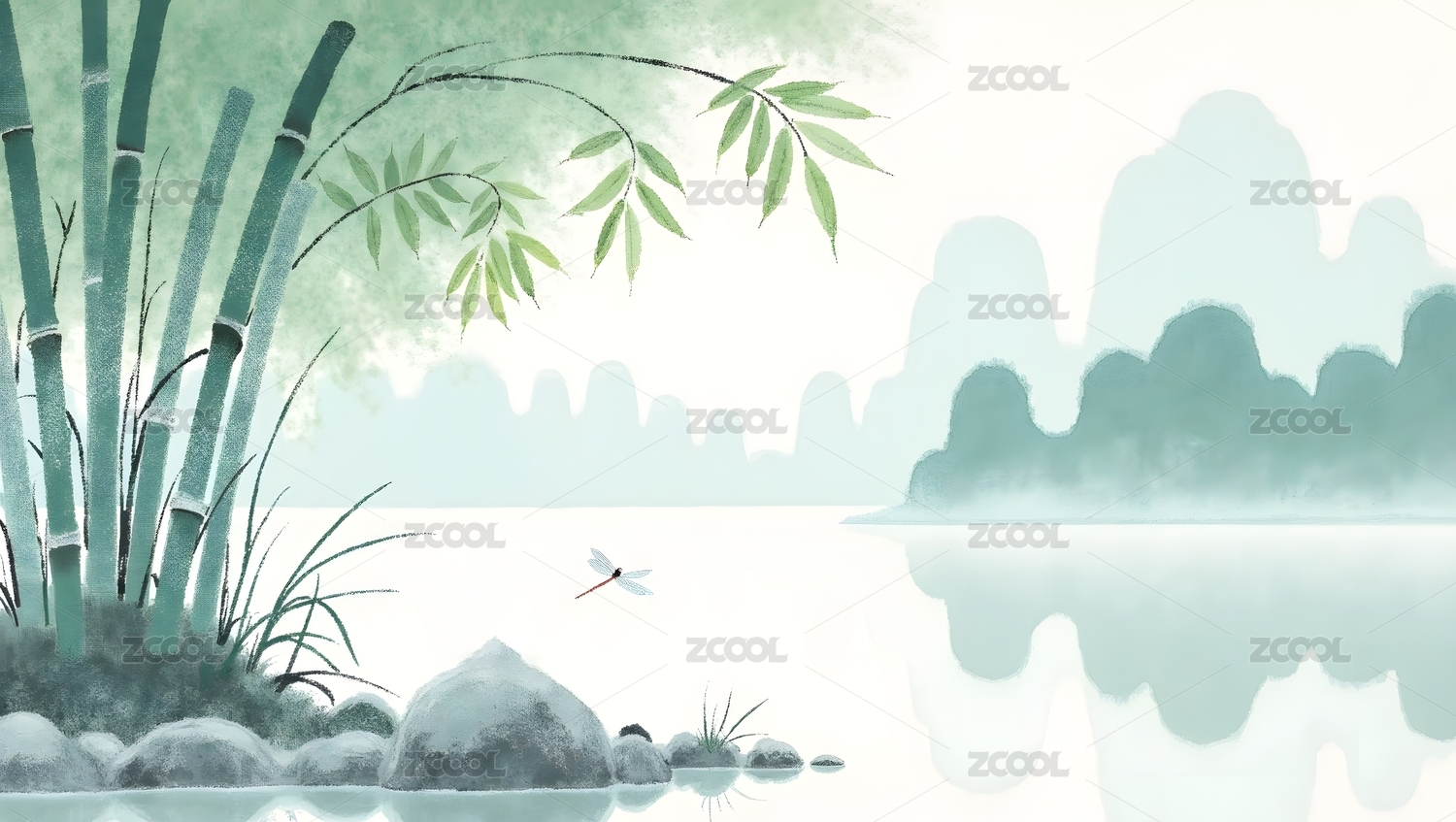 中国风黑白淡雅抽象艺术中国传统山水诗意水