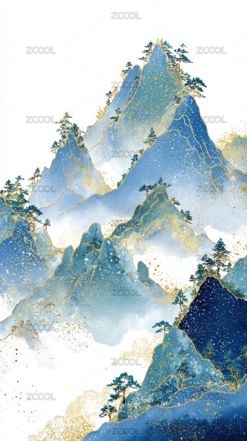 山峦,水墨,意境,飘渺,宁静,远山,清幽,淡雅,空灵,金箔