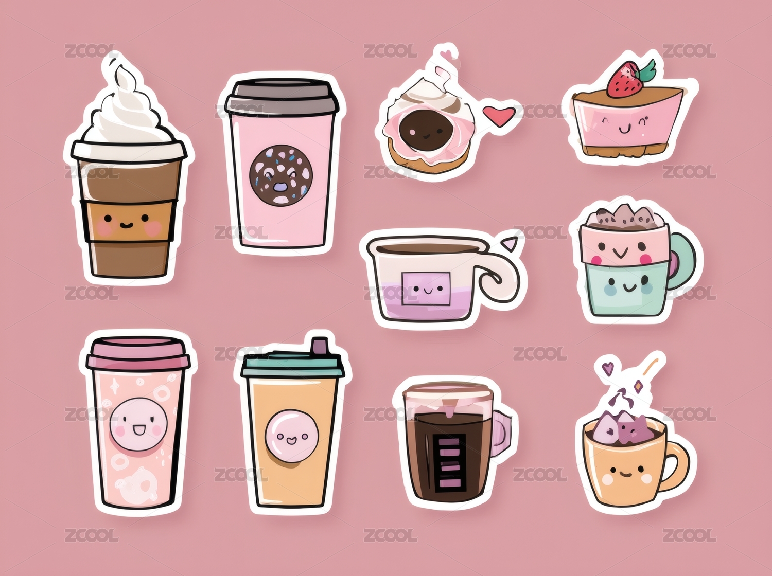 萌系可爱卡通甜品蛋糕表情贴纸手绘免扣素材