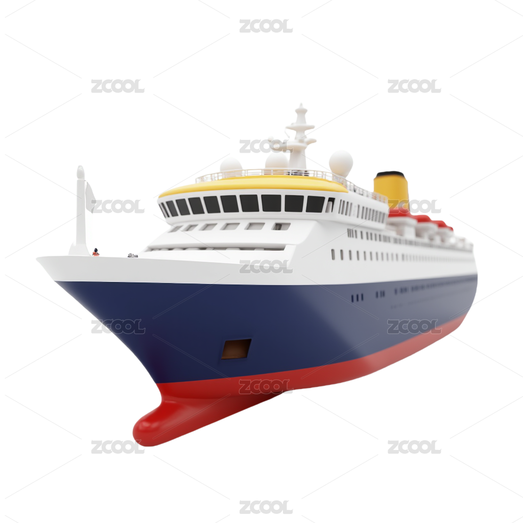 夏季邮轮旅行3D插画,海上班轮假日度假旅