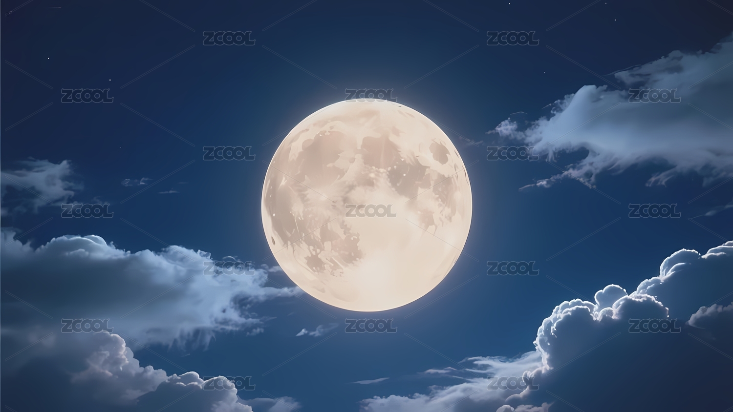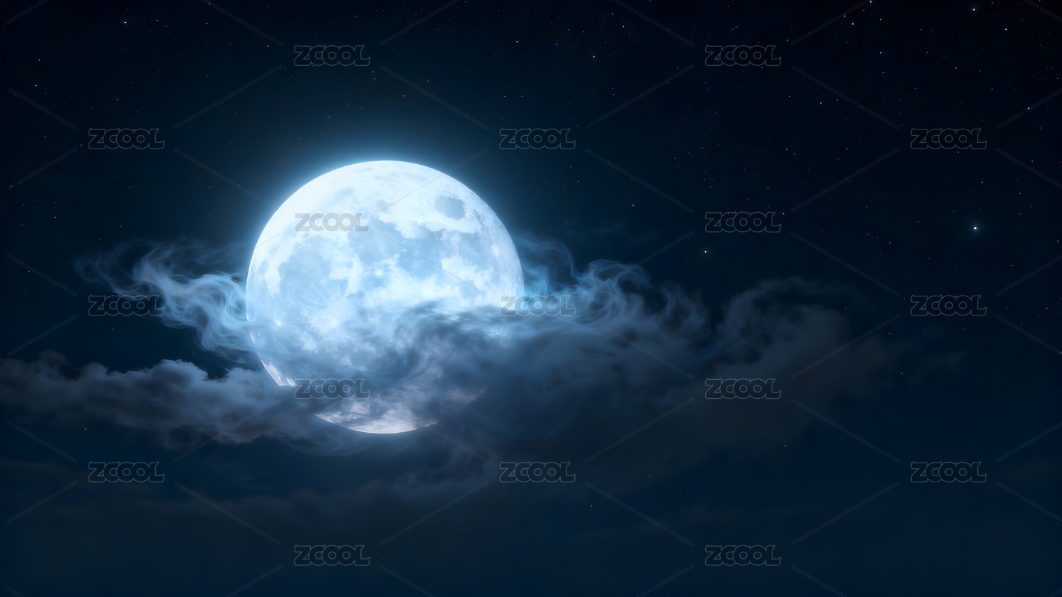 夜空中满月与云层交织的梦幻景象