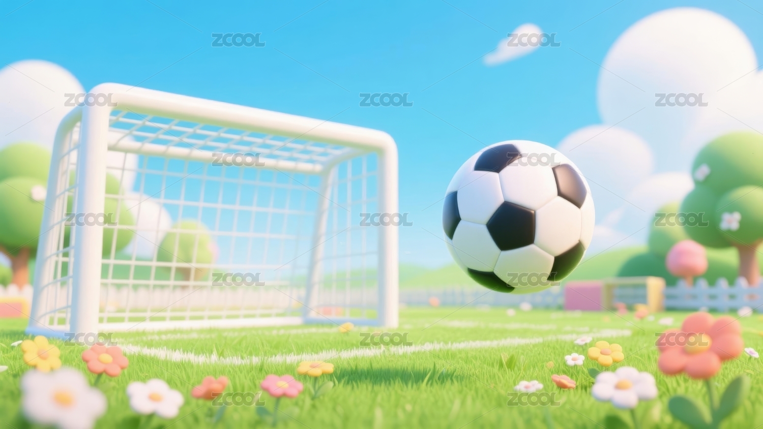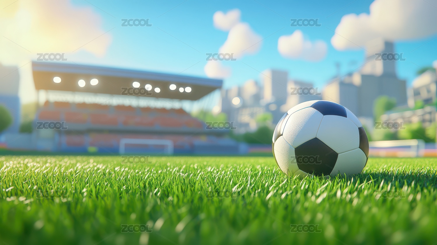 绿色,草地,建筑,蓝天,白云,阳光,足球,城市