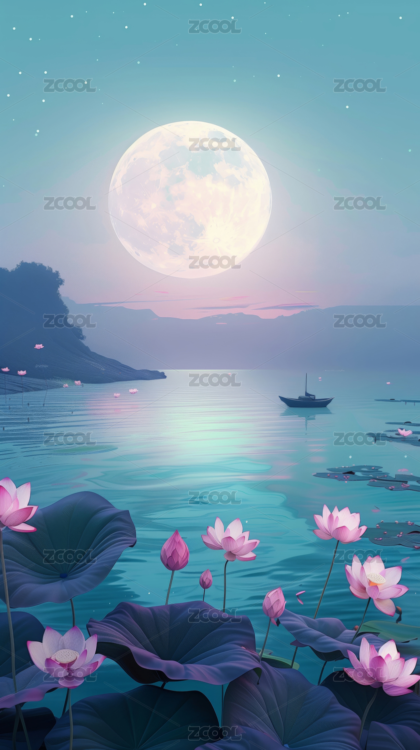 主视觉,场景,氛围,行业,风格,主体,背景,元素,月夜,湖景