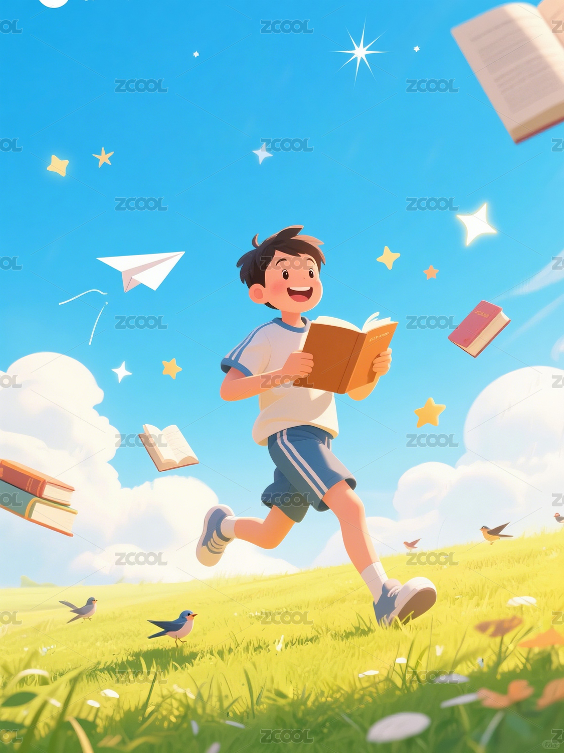 主视觉,学生,活力,校园,嬉戏,场景,儿童,跳跃,纸鸢,书本