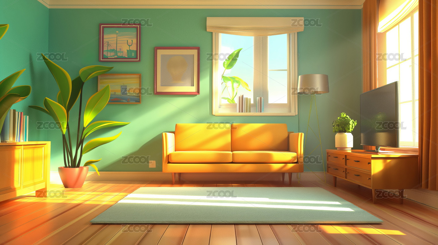 3d卡通风格的客厅环境