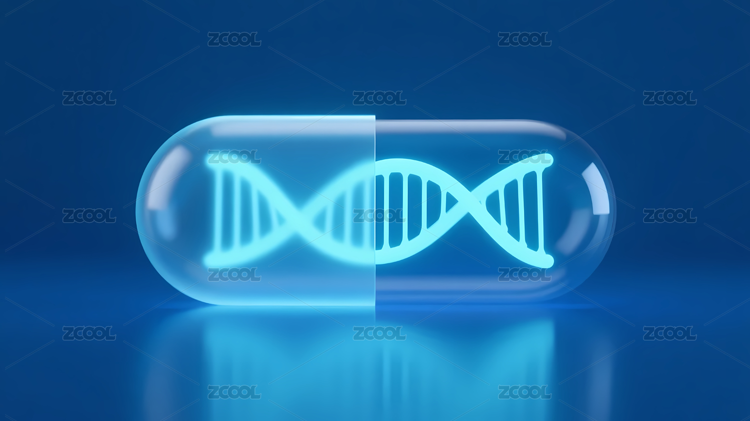 透明胶囊内含DNA双螺旋与蓝色分子球