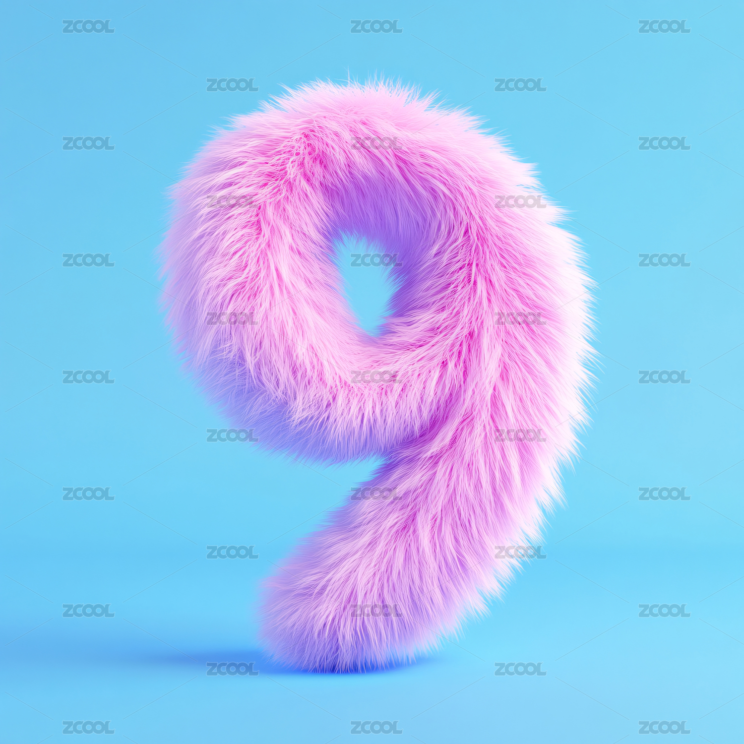 粉色毛绒质感的数字9