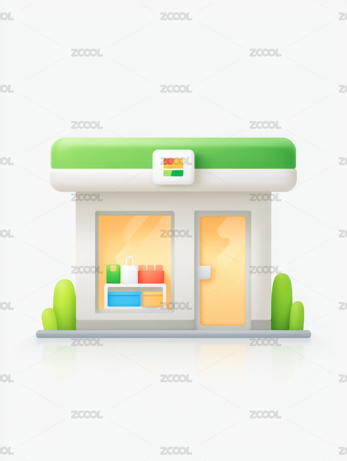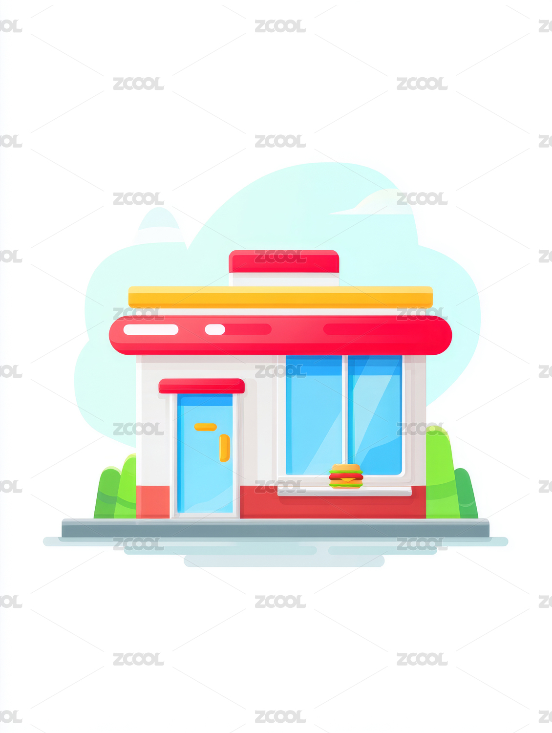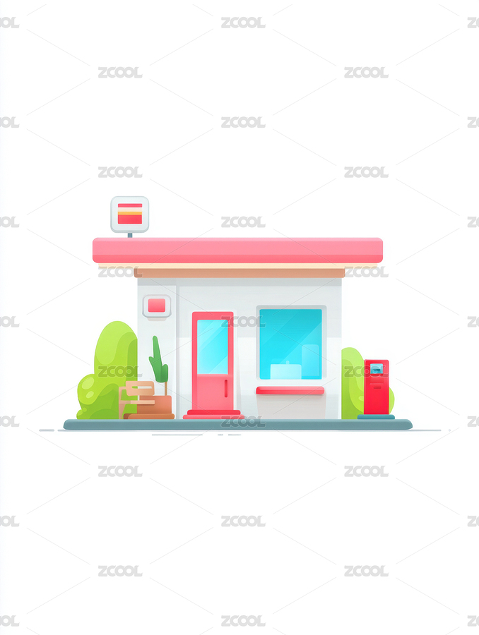便利店,建筑,门,窗户,植物,红色,简约,现代,标识