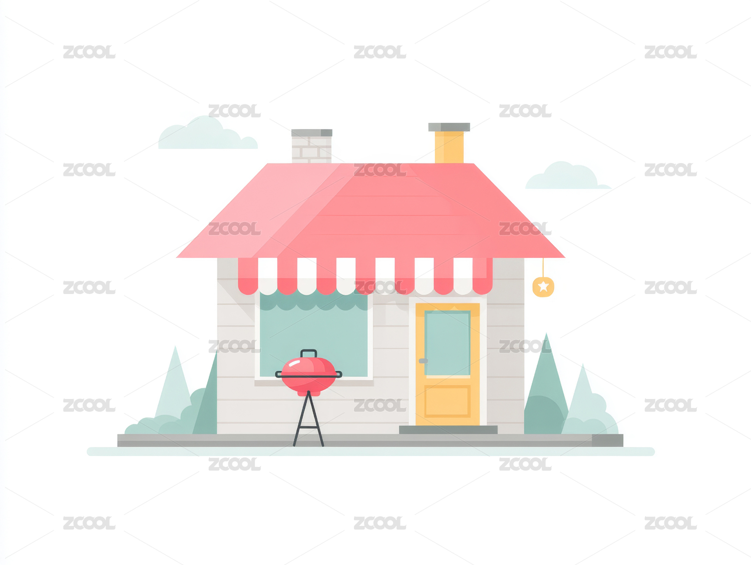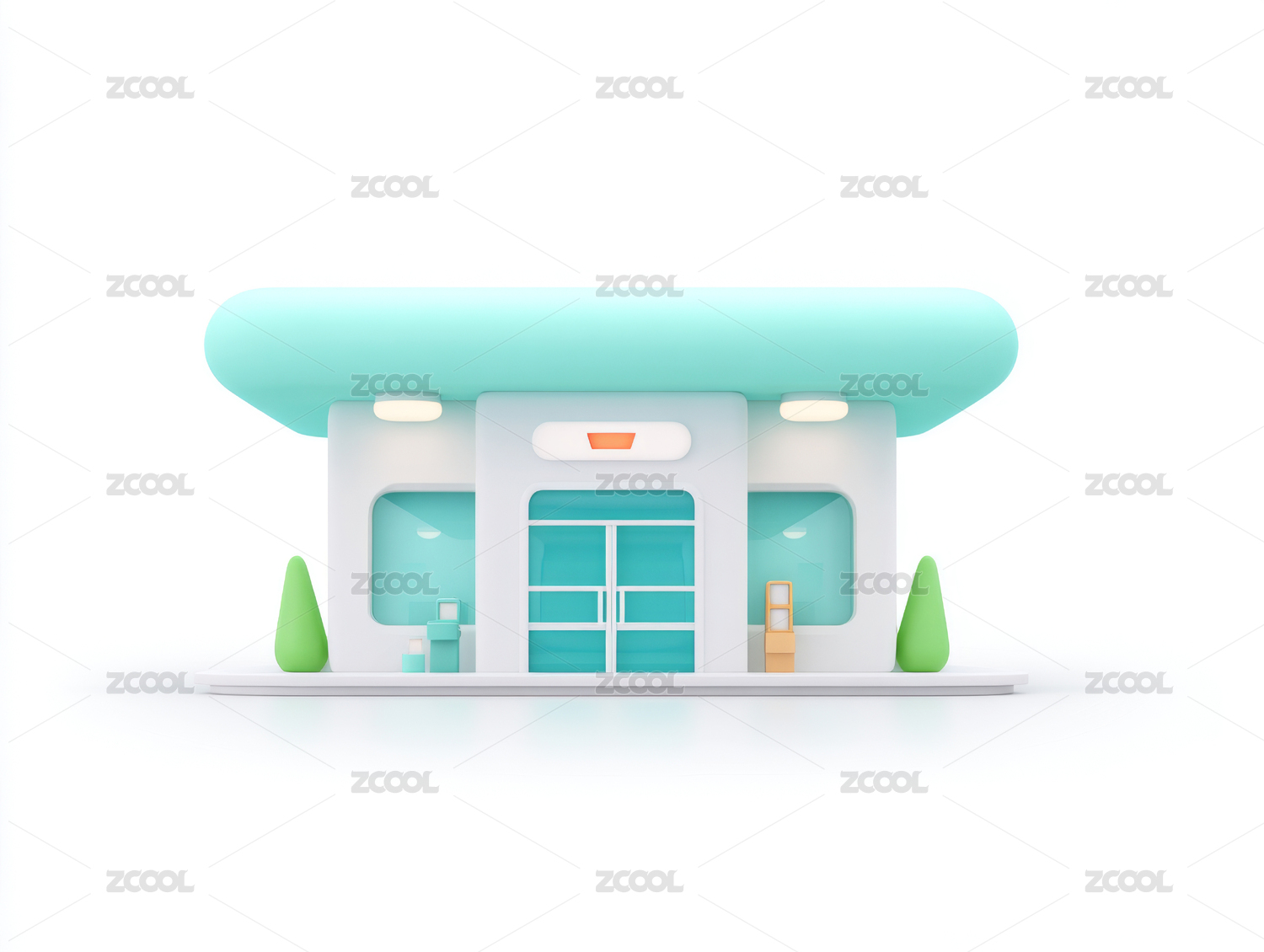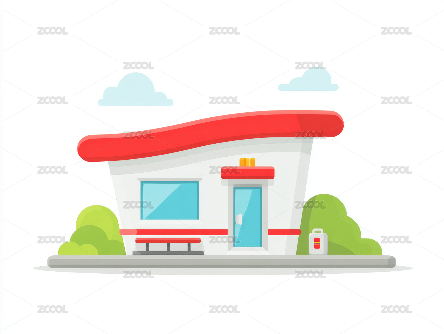 便利店,建筑,门,窗户,植物,红色,简约,现代,标识