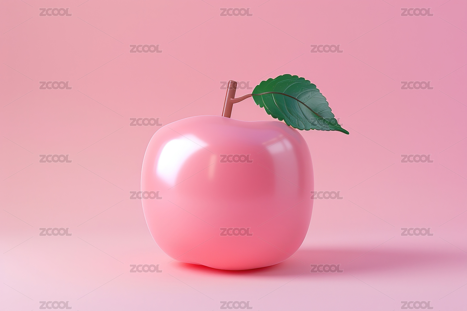 粉色,苹果,叶子,光泽,卡通,简约,白色,背景