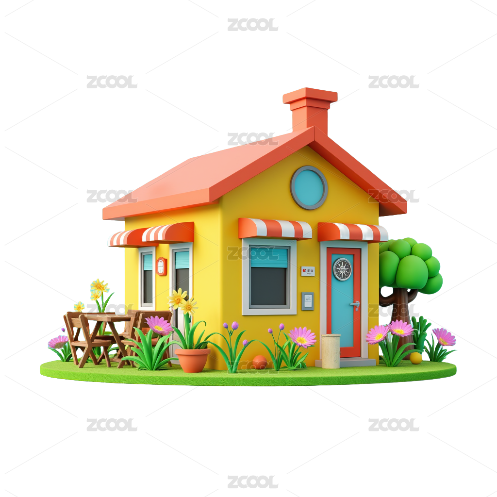 玩具,小屋,商店,模型,红色,绿色,门窗,盆栽,信箱