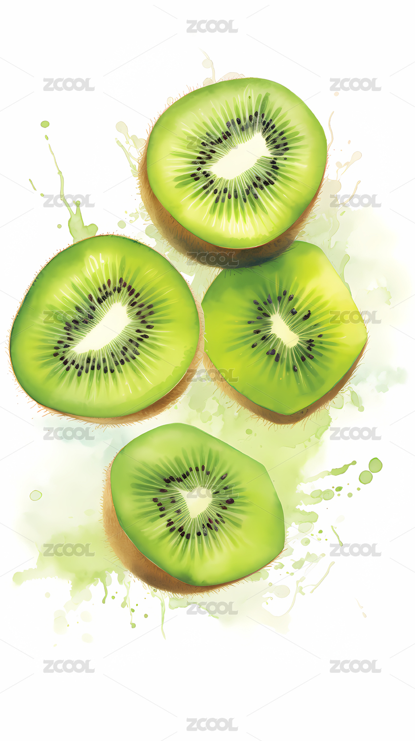 写实插画猕猴桃减肥餐水果绿色立体甜品