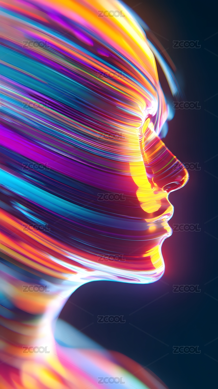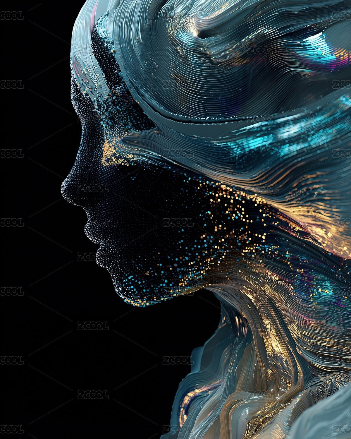 彩色浅浮雕牛奶液体颜料女性3D立体头像