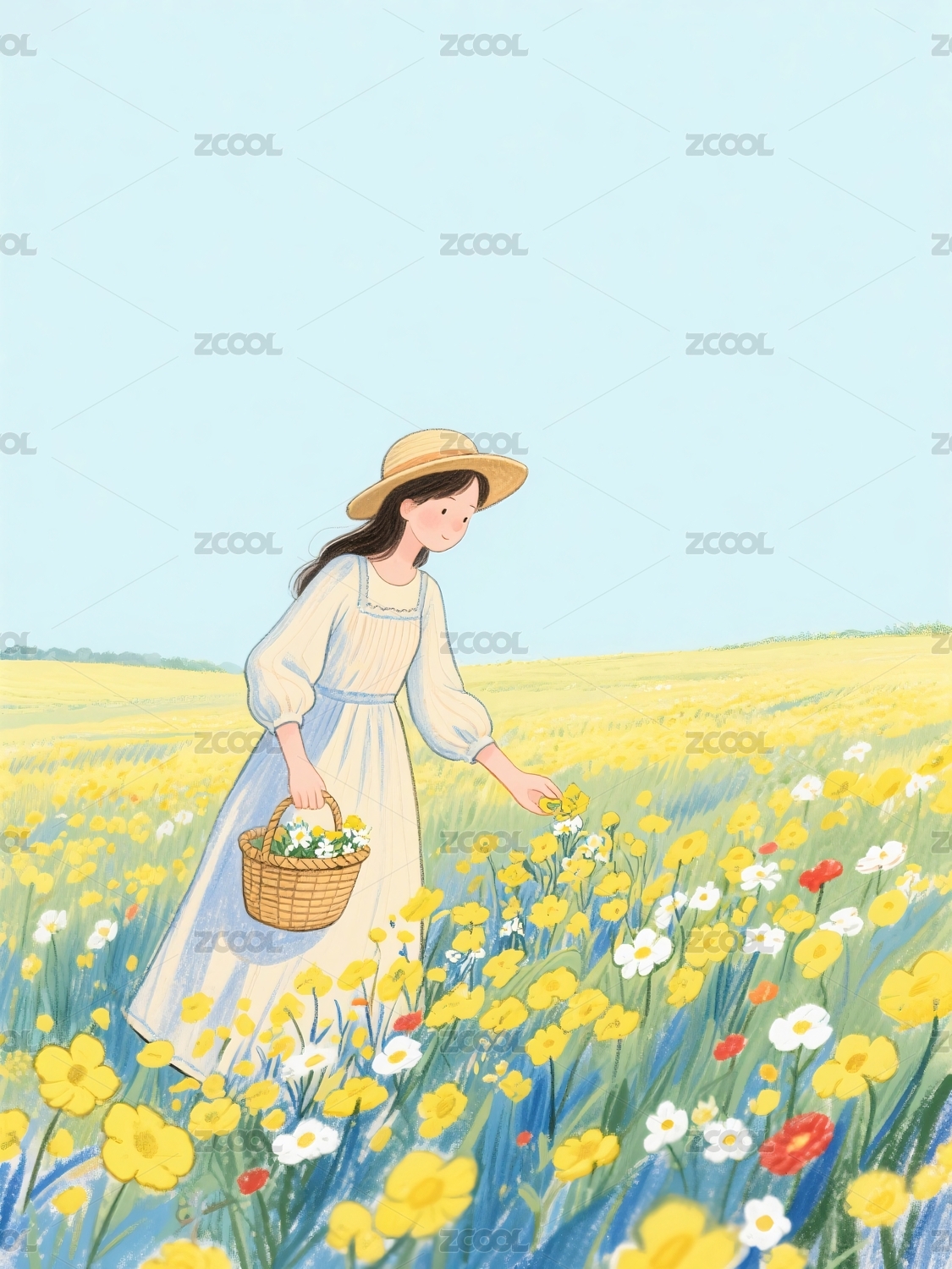 花田女孩插画
