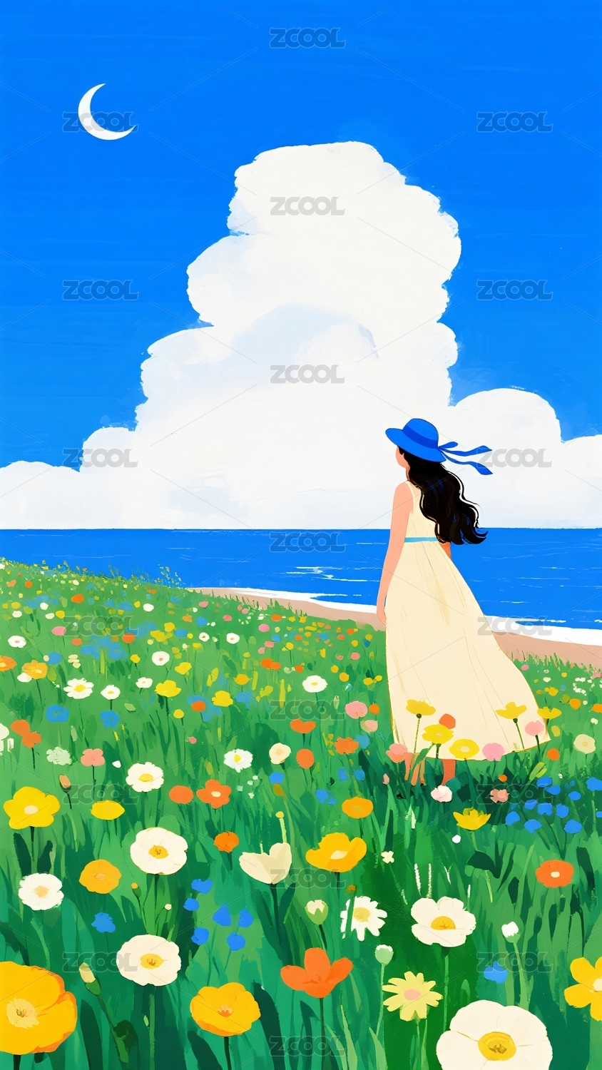 少女花海插画