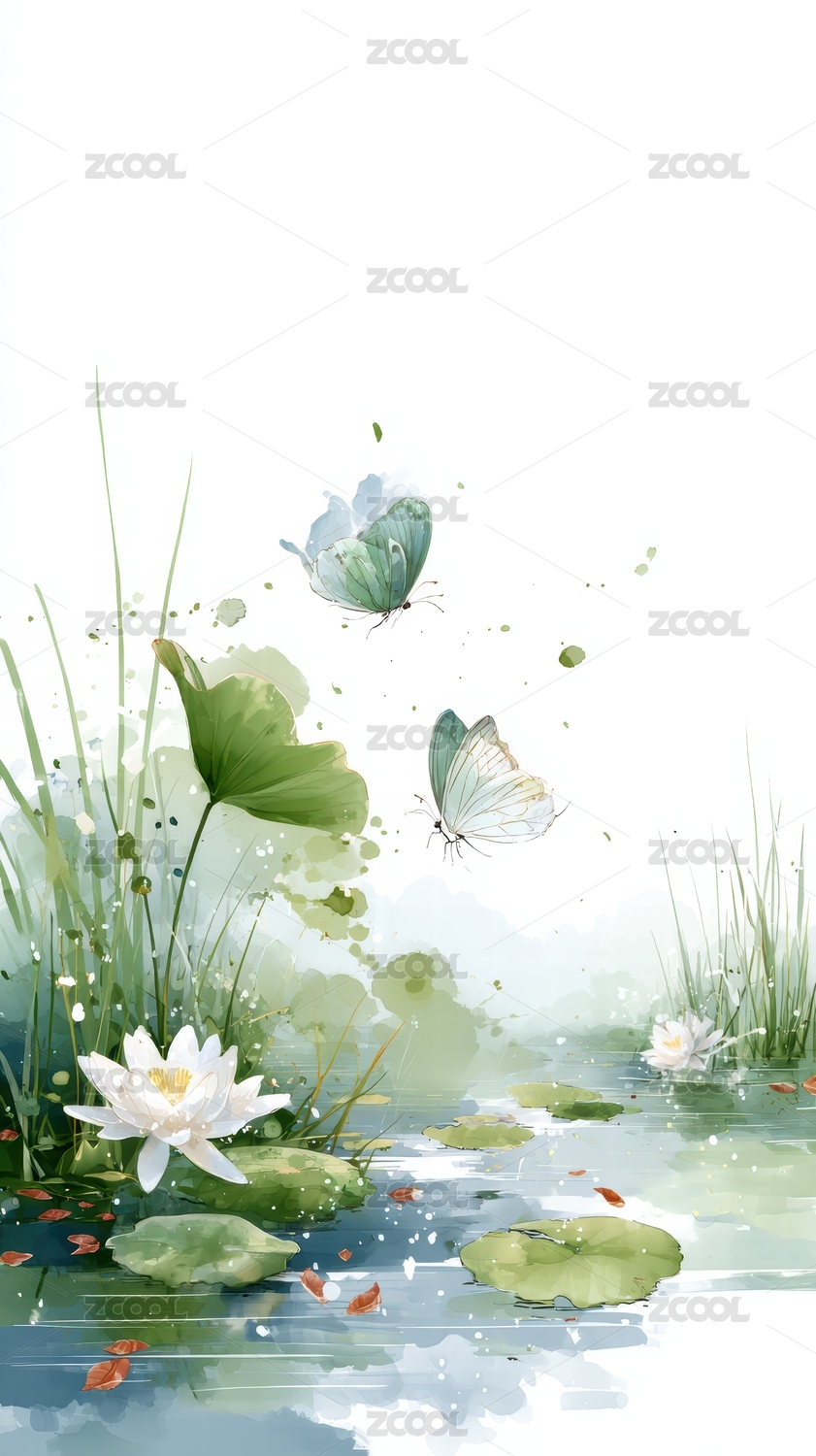 池塘荷叶翩翩蝴蝶的梦幻场景