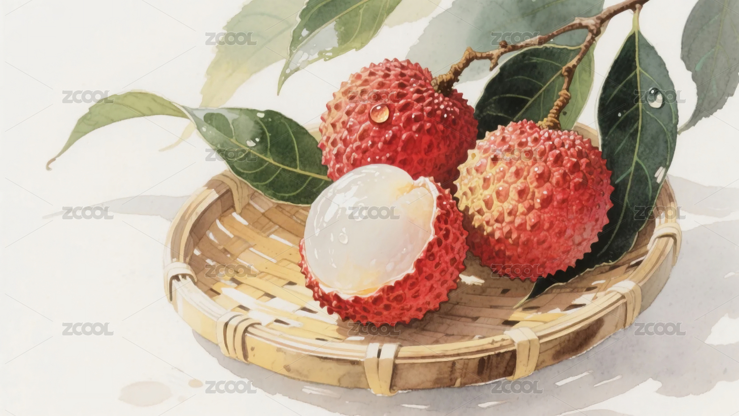 文化,绘画,艺术,风格,传统,中国,荔枝,静物,水彩,写意