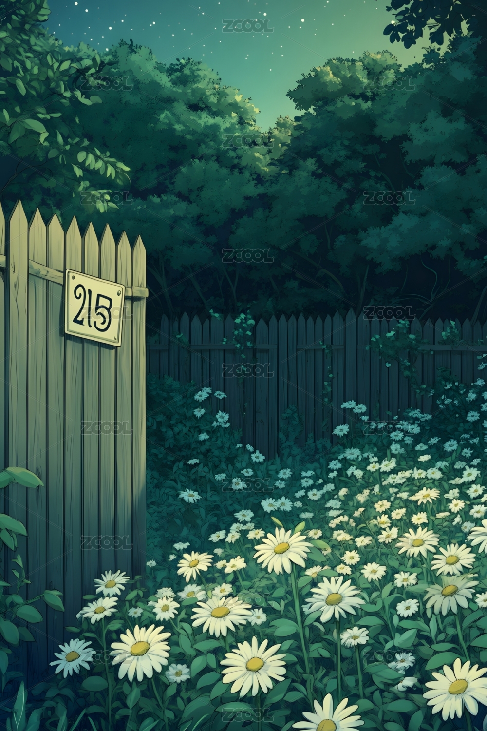 花园里的植物花朵唯美插画