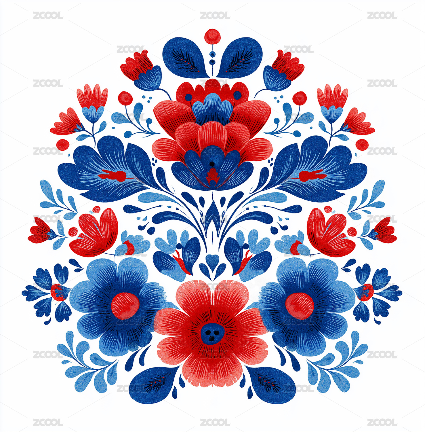 蓝色花卉传统纹样装饰