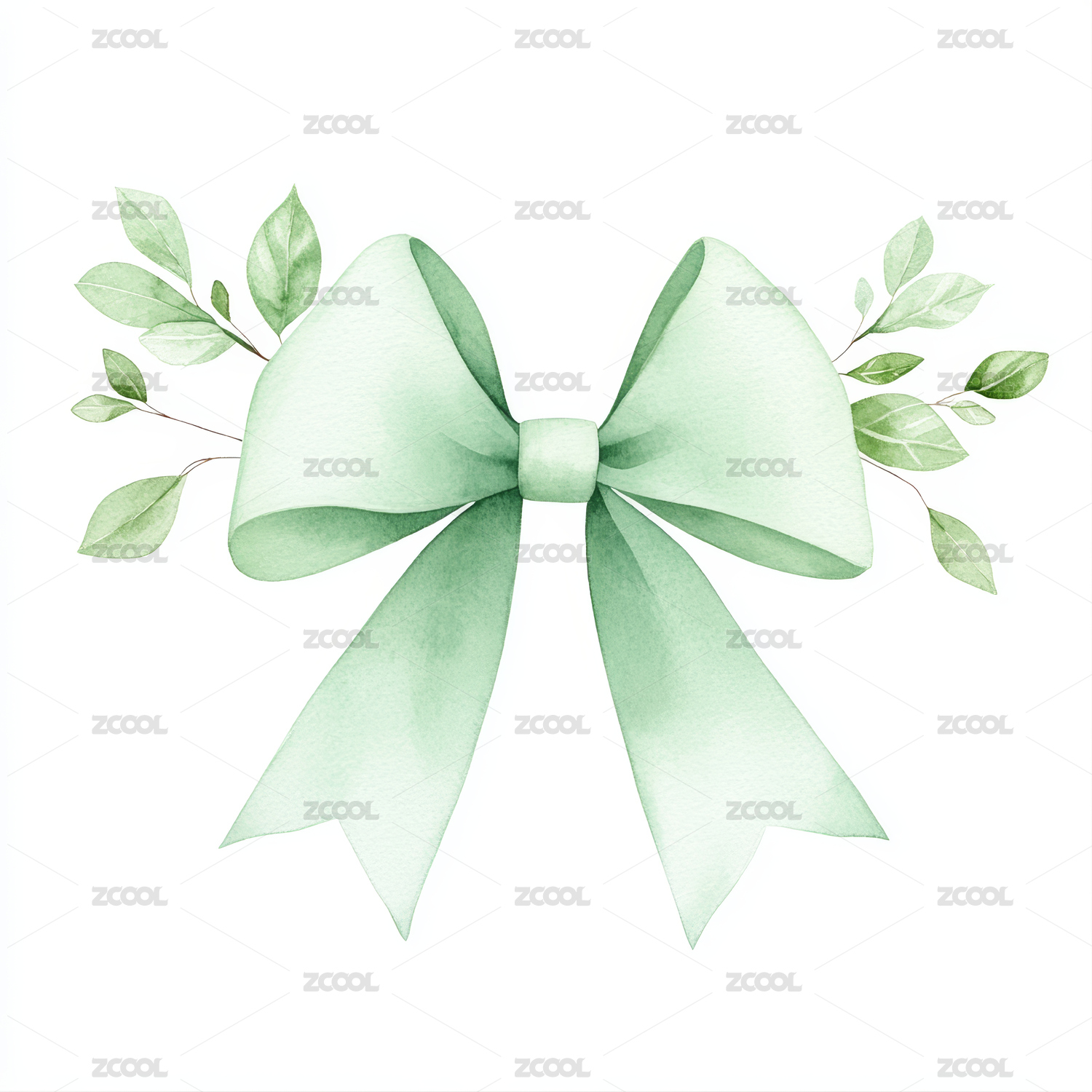 丝带,花环,花簇,绿色,淡雅,清新,水彩,装饰,礼物,蝴蝶结