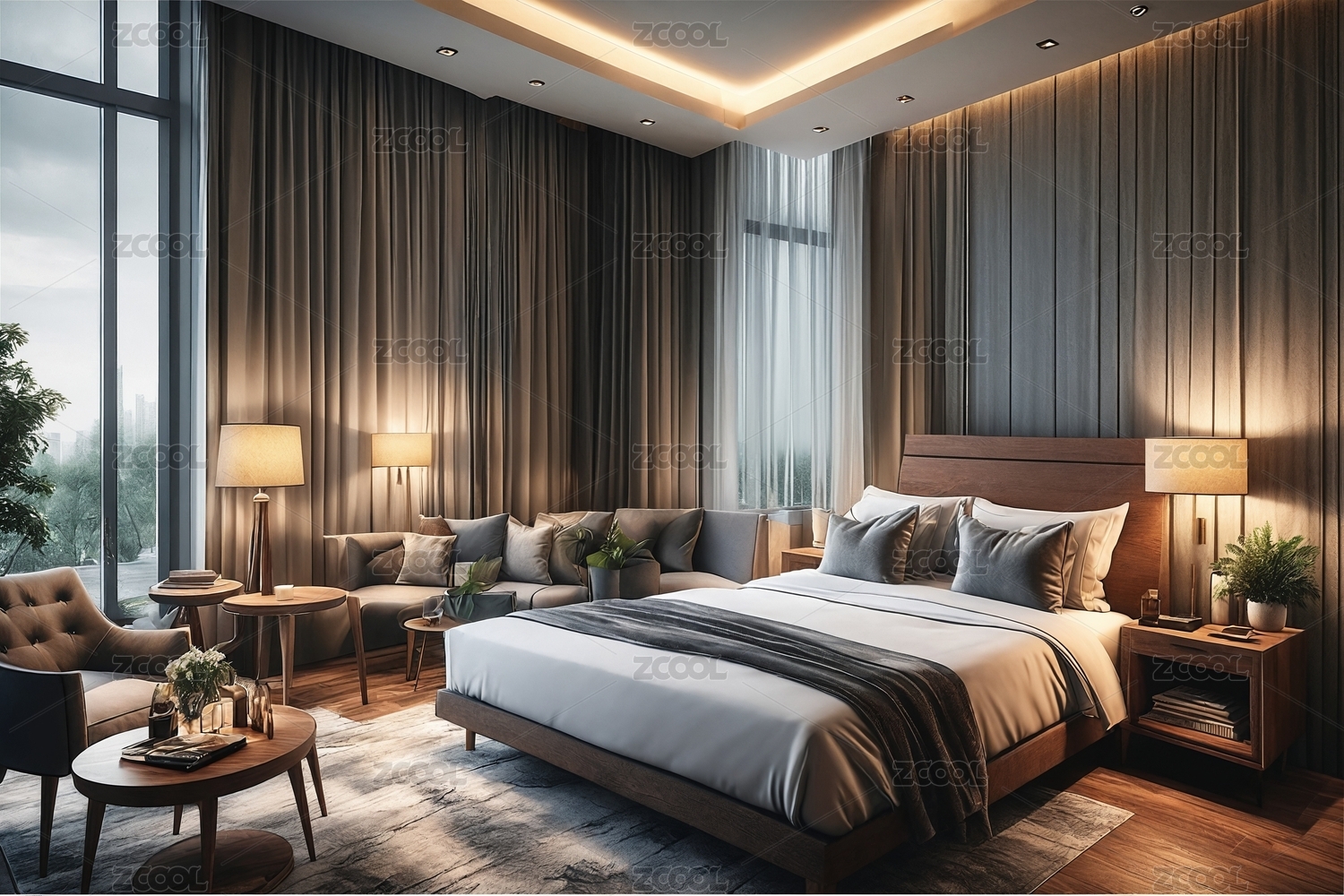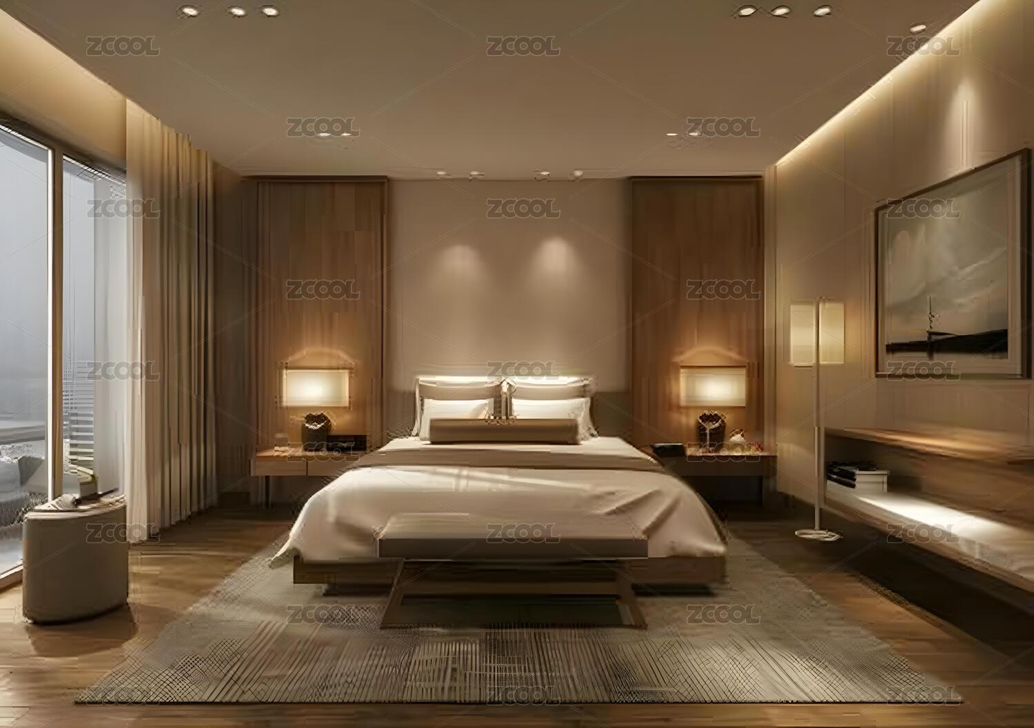 卧室,设计,酒店,床,窗户,家具,装饰,灯具,地毯,舒适