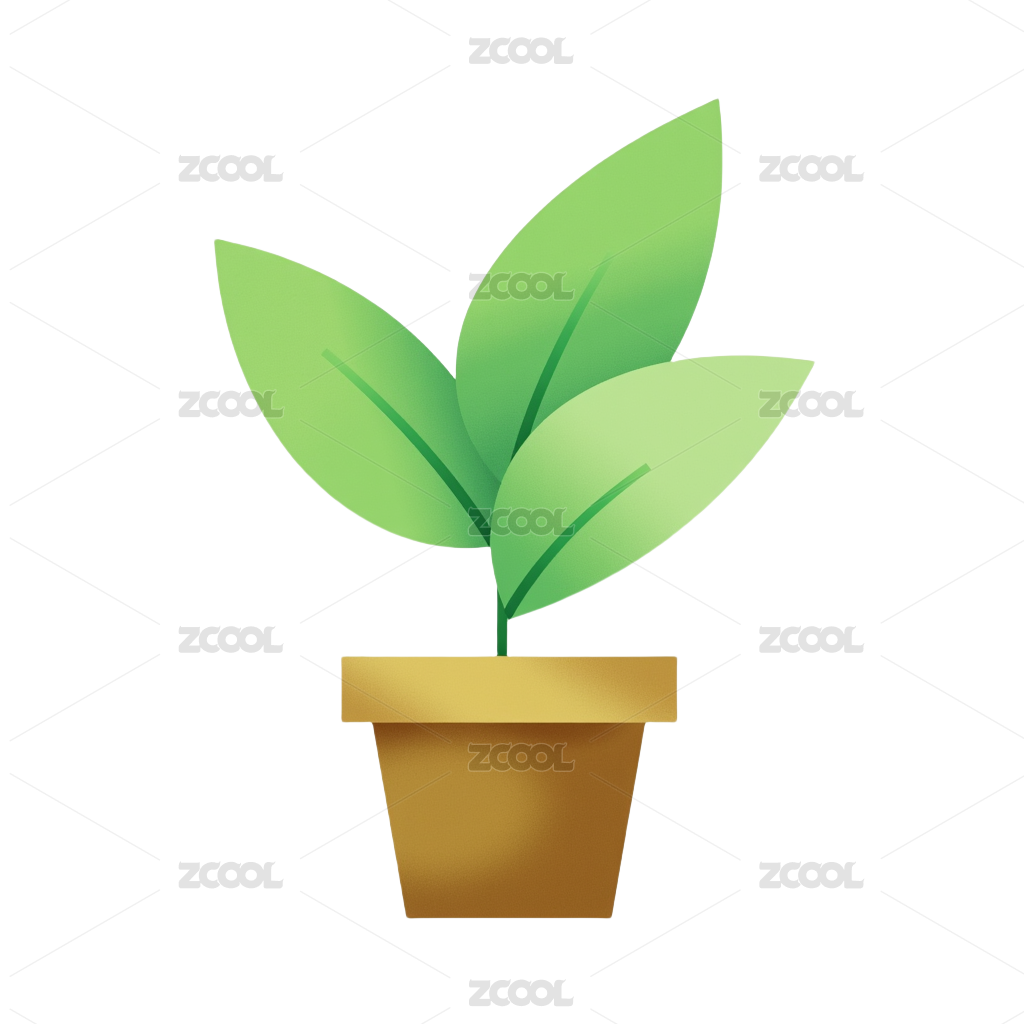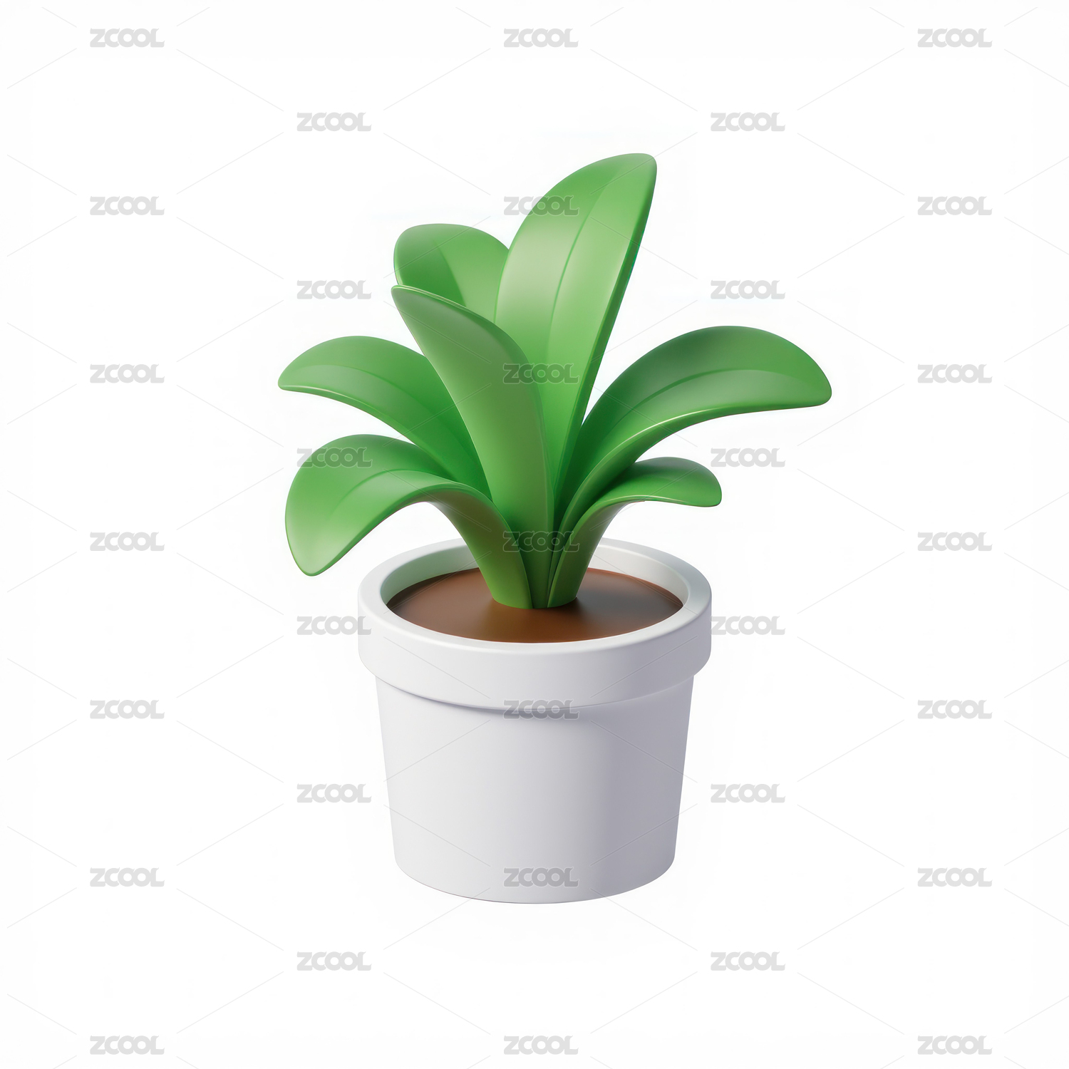 可爱绿色植物花盆开花3D园艺家居概念元素