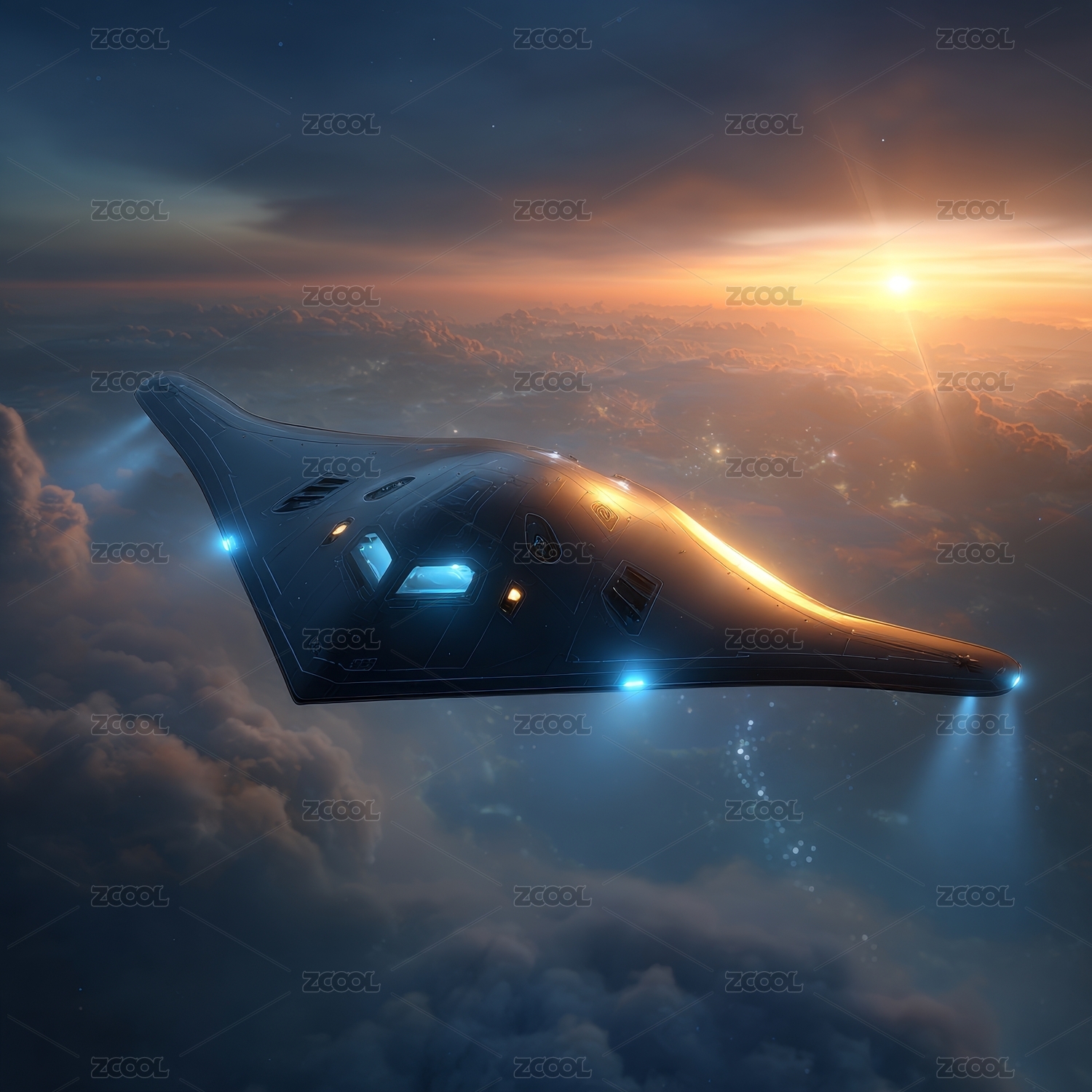 科幻飞行器翱翔天际