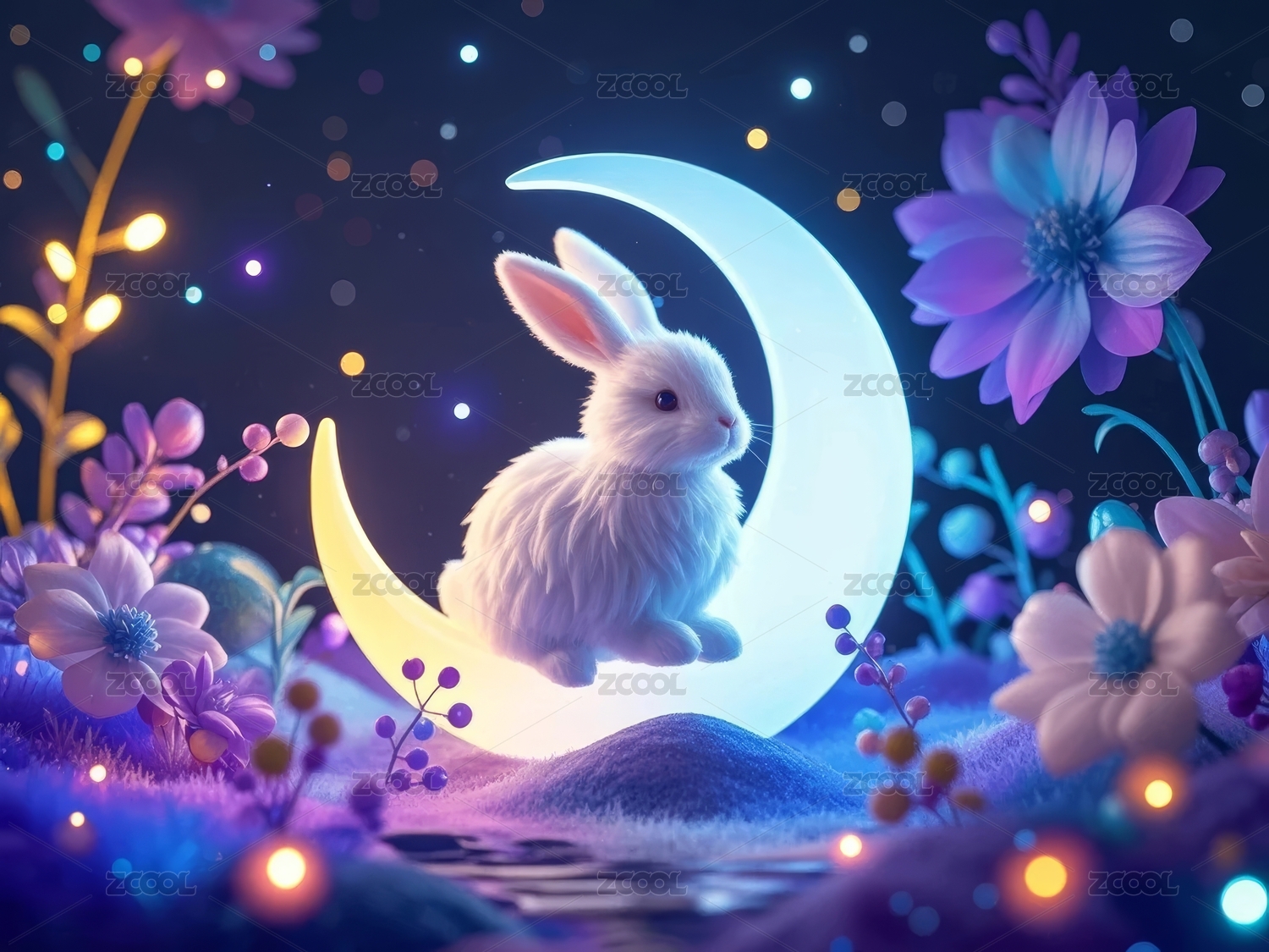 主视觉,设计,场景,美学,艺术,明月,插画,月亮,花卉,自然